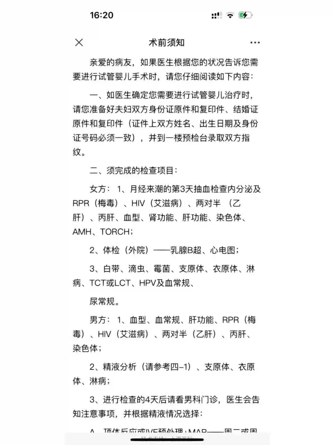 2、我选择在月经来的第三天也就是今天,去集爱医院开始了我们试管的前期检查!为什么选择第三天?因为要检查性激素六项!具体检查项目可以查看图3,公众号上有文章!染色体终身有效,做过的带过去就行!注意:心电图在红房子做,具体地址可以咨询二楼护士台的小姐姐们!直接进红房子心电图室询问医生就行!我去了直接做的!
