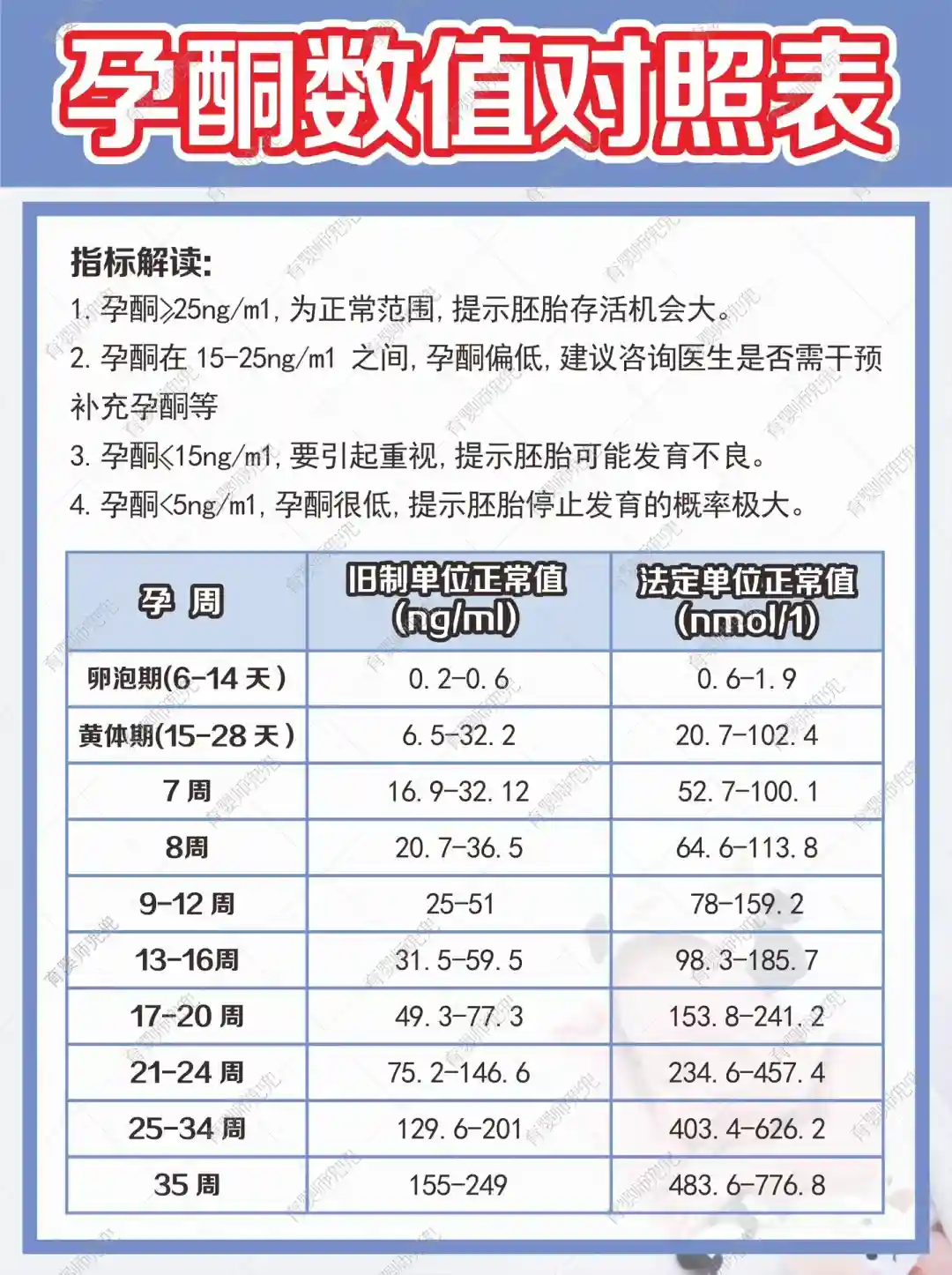 孕酮在15ng/ml~25ng/ml之间,孕酮偏低,遵医嘱补充孕酮
