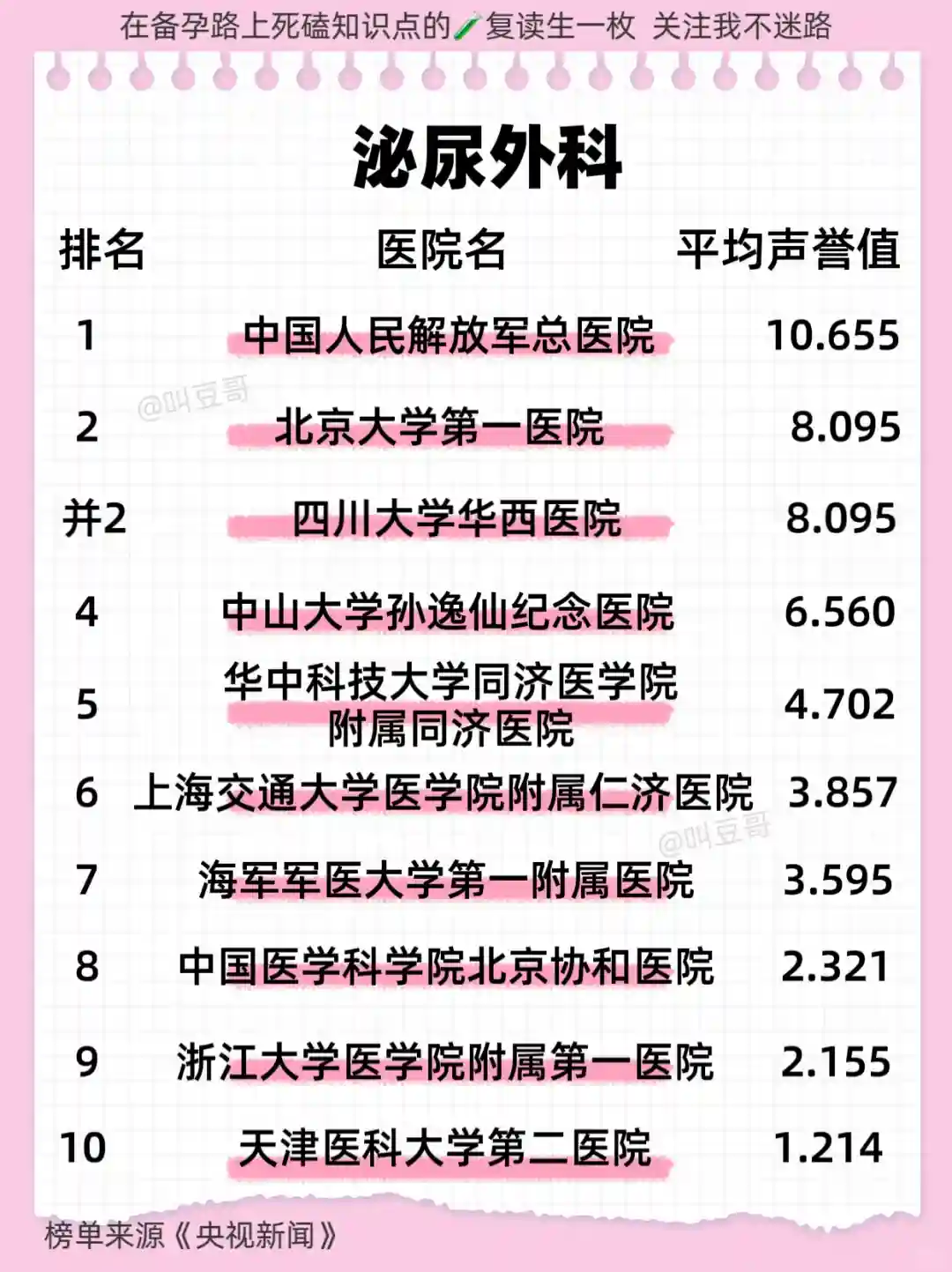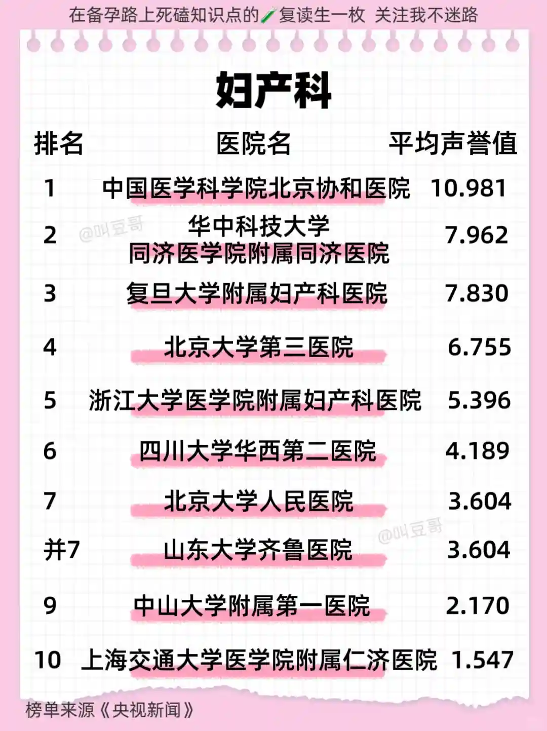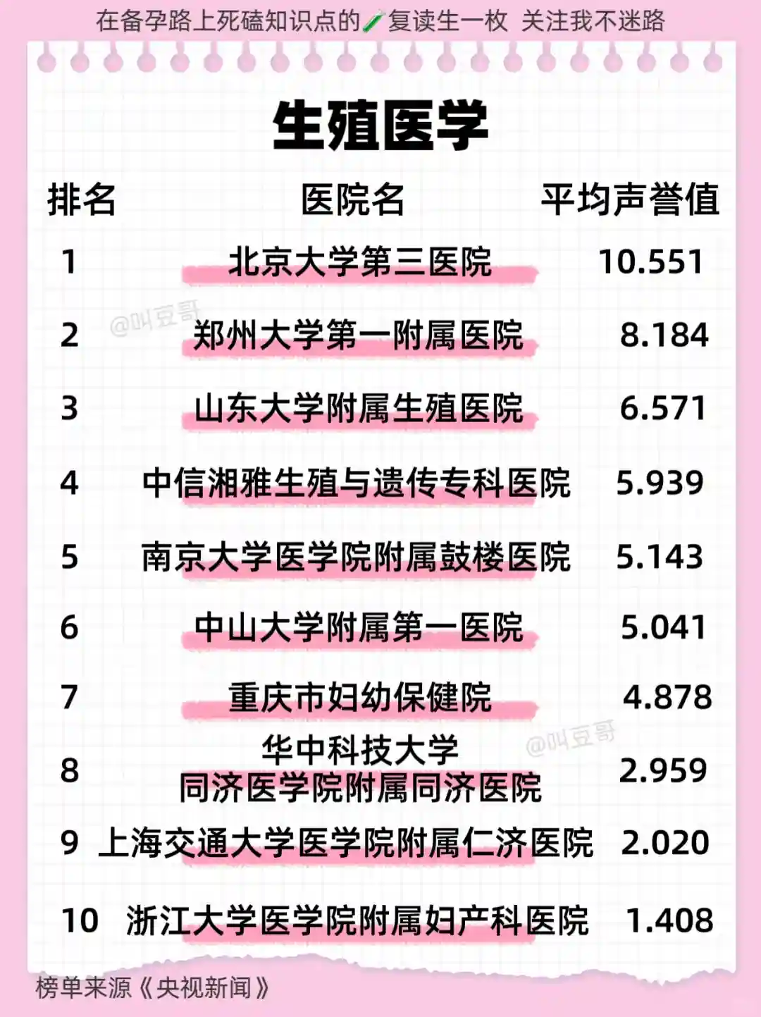 做试管🧪或者备孕最最重要的参考就是:图2【全国前十名生殖医学科医院】和图3【全国前十名妇产科医院】