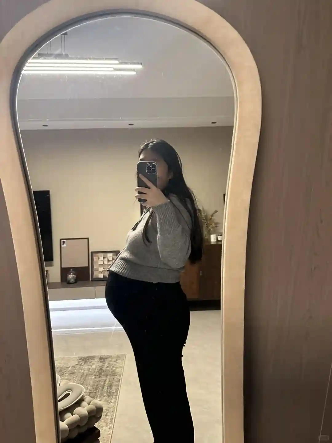 我的肚型不算太圆,我奶当时还说我肚子尖,肚子比较往下坠,说是个女孩,我是后壁,平时生活中感觉也不太显,我老公说从后边背影就看不太出来我像怀孕,我个人觉得看肚型这个东西不准