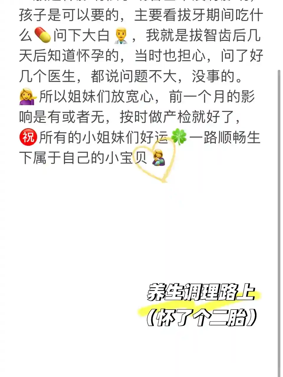 我是拔智齿后几天后知道怀孕的,当时也担心,问了好几个医生,都说问题不大,没事的。