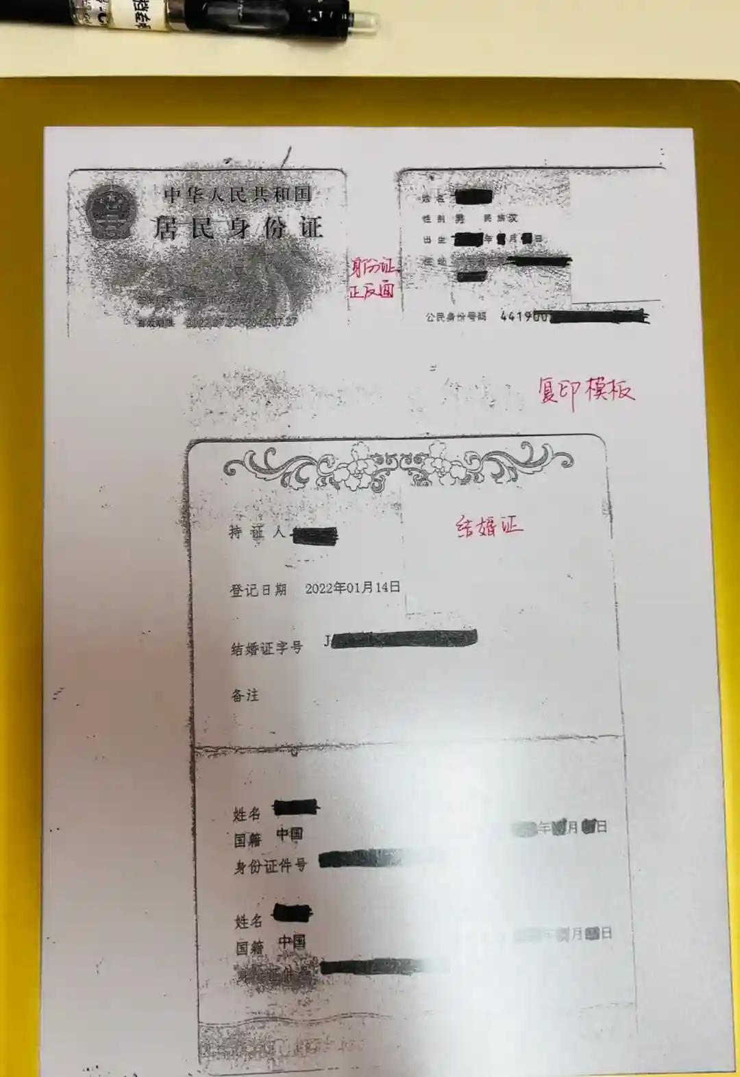 2️⃣准备资料:结婚证、身份证、社保卡复印件(复印标准图四)