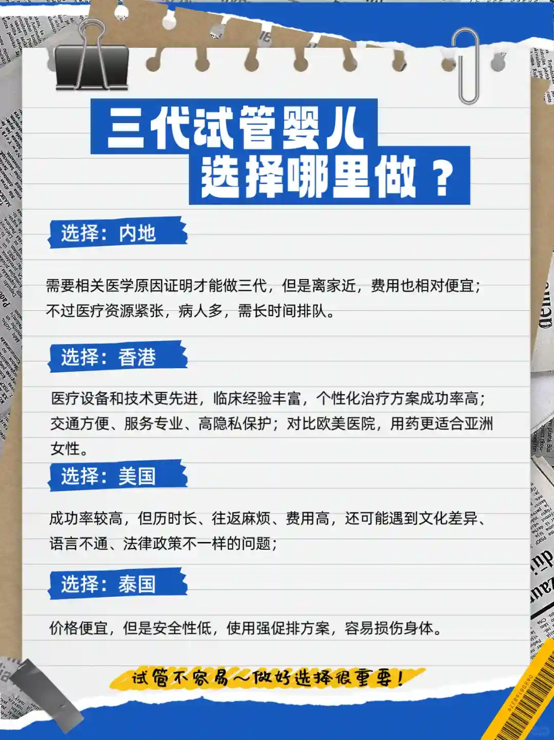 ✅内地:需要相关医学原因证明才能做三代,但是离家近,费用也相对便宜;不过医疗资源紧张,病人多,需长时间排队。