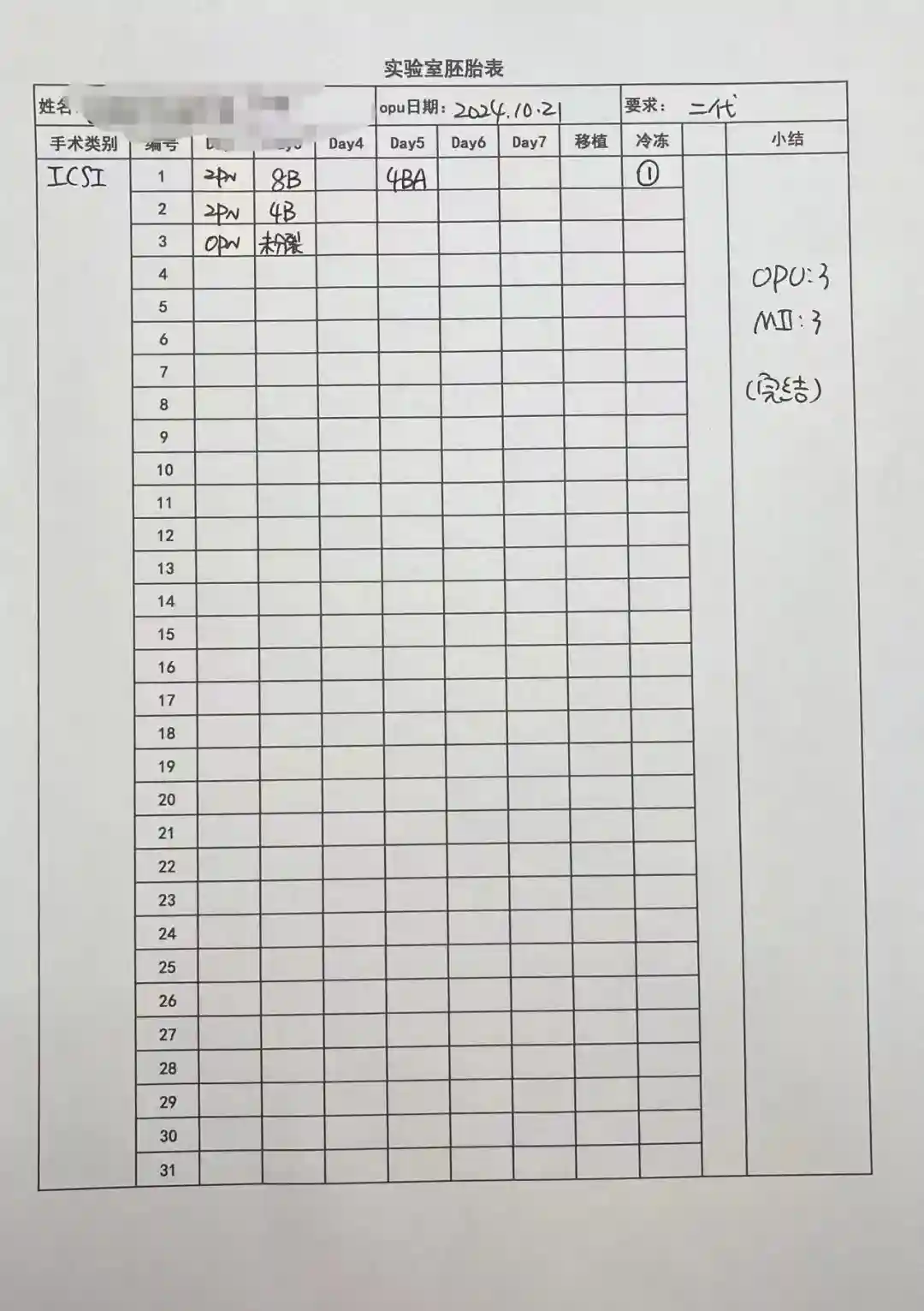 一次促排取卵4个还空卵一个,可用3个受精才2个,养嚷一个8细胞4BA是嚷胚。4细胞养没了。图片是激素六项的结果。雌二醇比较低。促排是窦卵泡数量6开始的。10.10号开始前四天打了四天生长激素4单位,和丽申宝3支,还有氯米芬每天一粒这样弄了四天后窦卵泡数后面8个。后面就没给我打生长激素咯。第5天10.14开始丽申宝三支,乐宝得一支,打三天,氯米芬每天一粒继续吃,这样又弄了三天。这就打完7天促排针了。10.17号第8天丽申宝三支,乐宝得一支又打两天,氯米芬每天一粒吃。这样打了两天就打了9天了。10.19号第10天打乐得宝3支。晚上9.30打夜针,打了HCG10000和达必佳0.1扳机,35小时后取卵。10.21号8.30取卵。图片3是开始促排的Bc单。图四是19号的BC单打夜针的那天的单子。21号取卵的。医生这是什么方案也没说。就取了四个卵还一个空的。我怎么感觉这个方案不适合我了。这是什么方案。