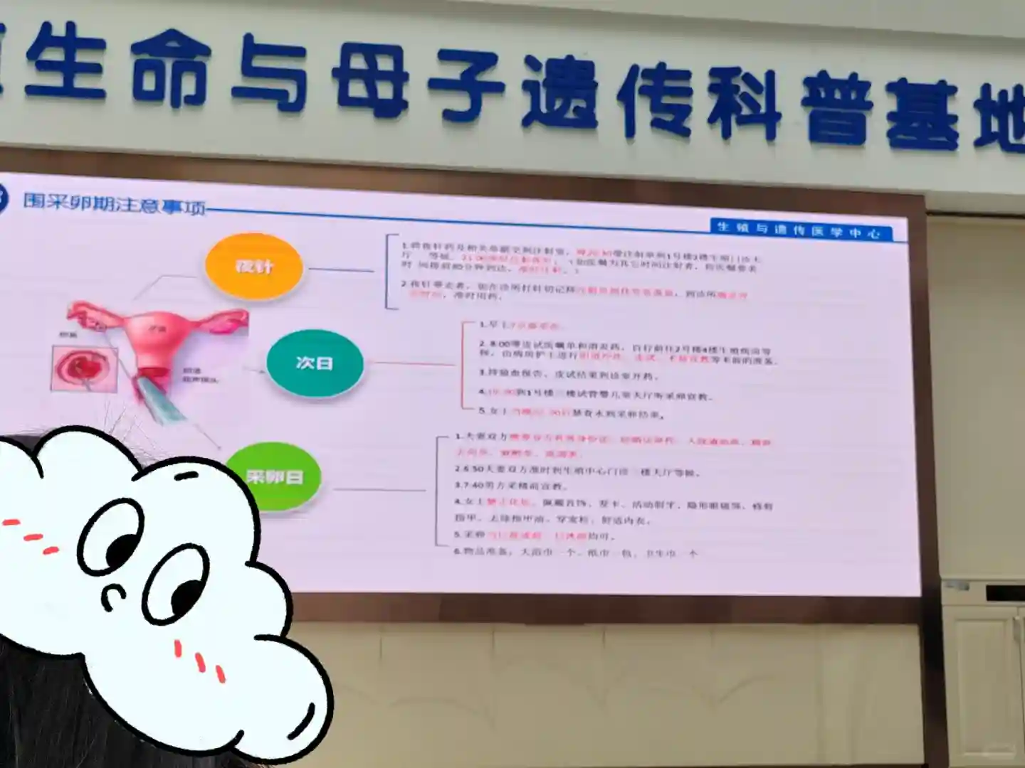 听完课程、要求回诊室,挂了号,大概等了半小时左右,又把合同里重要项的知情权告诉我签字按手印。还有就是签,印夫妻双方无家族遗传疾病史。