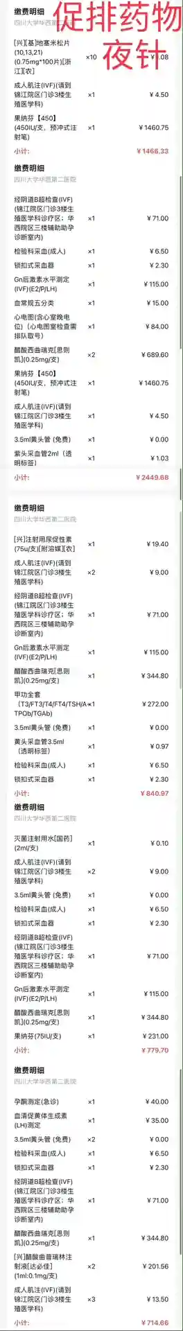 这里按照我做试管的时间顺序,分阶段整理,大笔的支出将附图