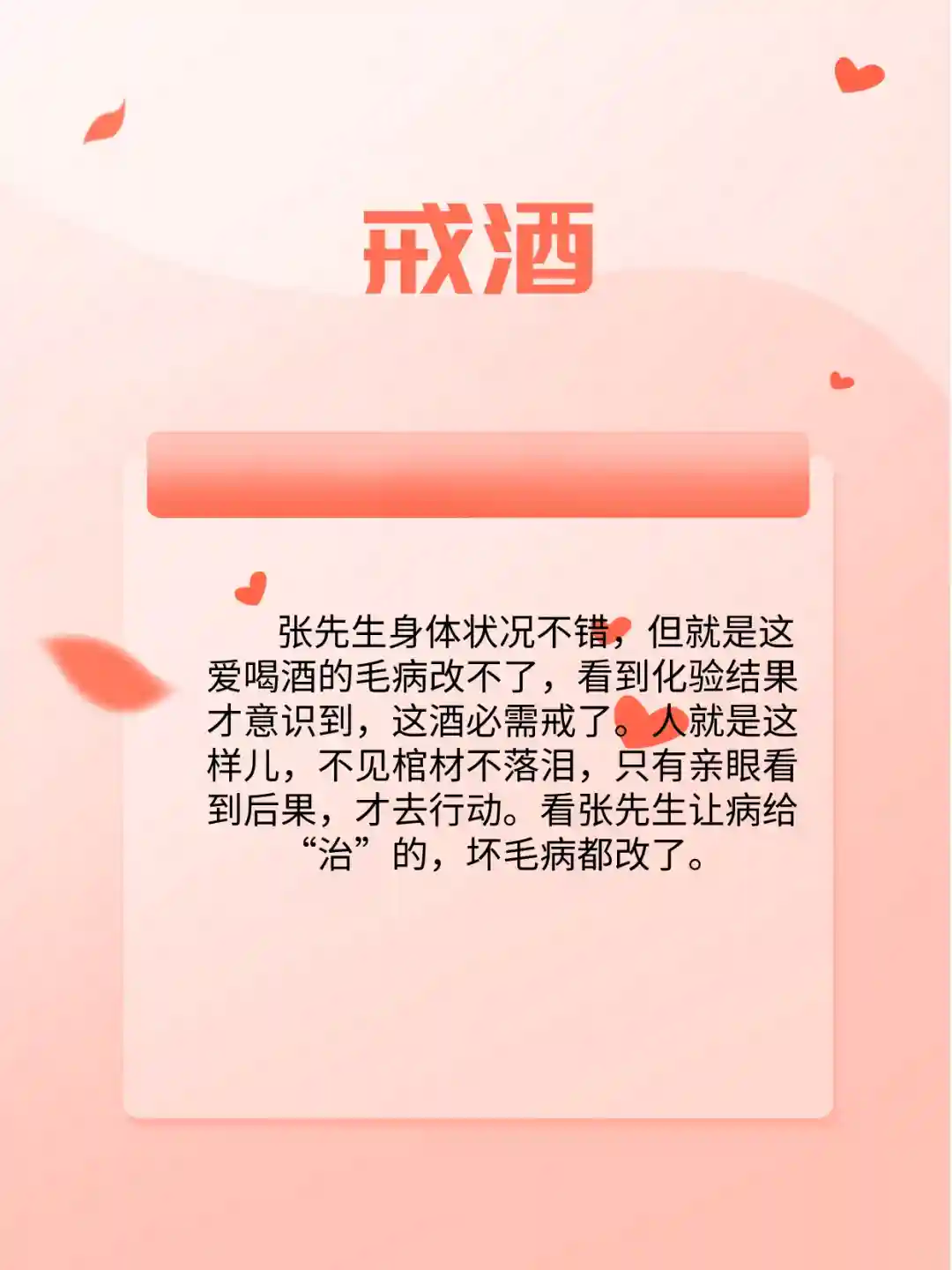 这个是首先去做的,张先生身体状况不错,但就是这爱喝酒的毛病改不了,看到化验结果才意识到,这酒必需戒了。人就是这样儿,不见棺材不落泪,只有亲眼看到后果,才去行动。看张先生让病给“治”的,坏毛病都改了。2、🍀🍀补充营养