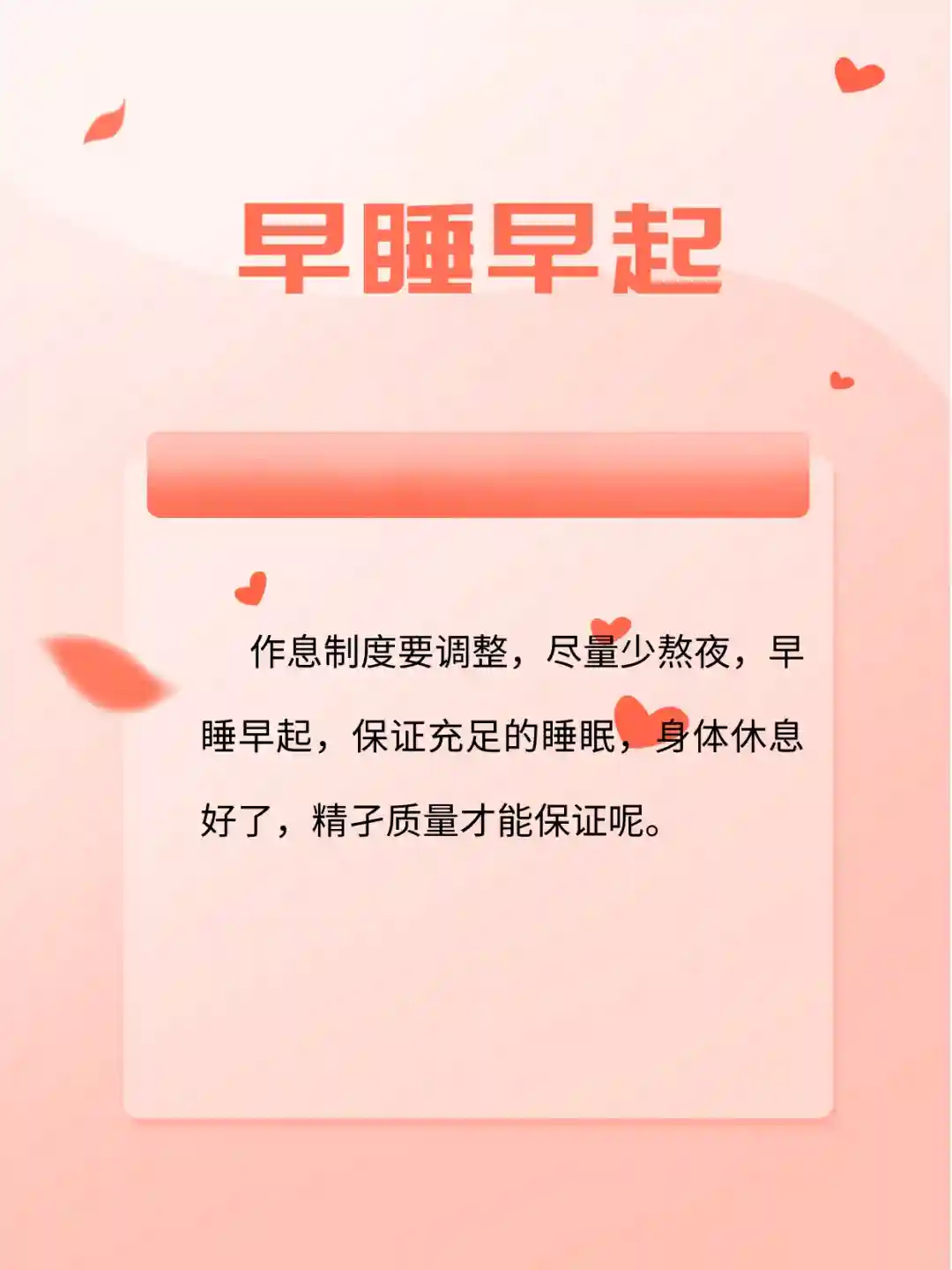 张先生的作息制度也调整了下,尽量少熬夜,早睡早起,保证充足的睡眠,身体休息好了,精孑质量才能保证呢。