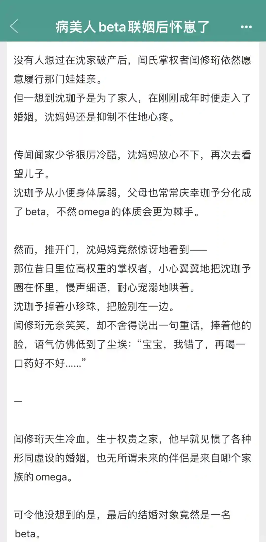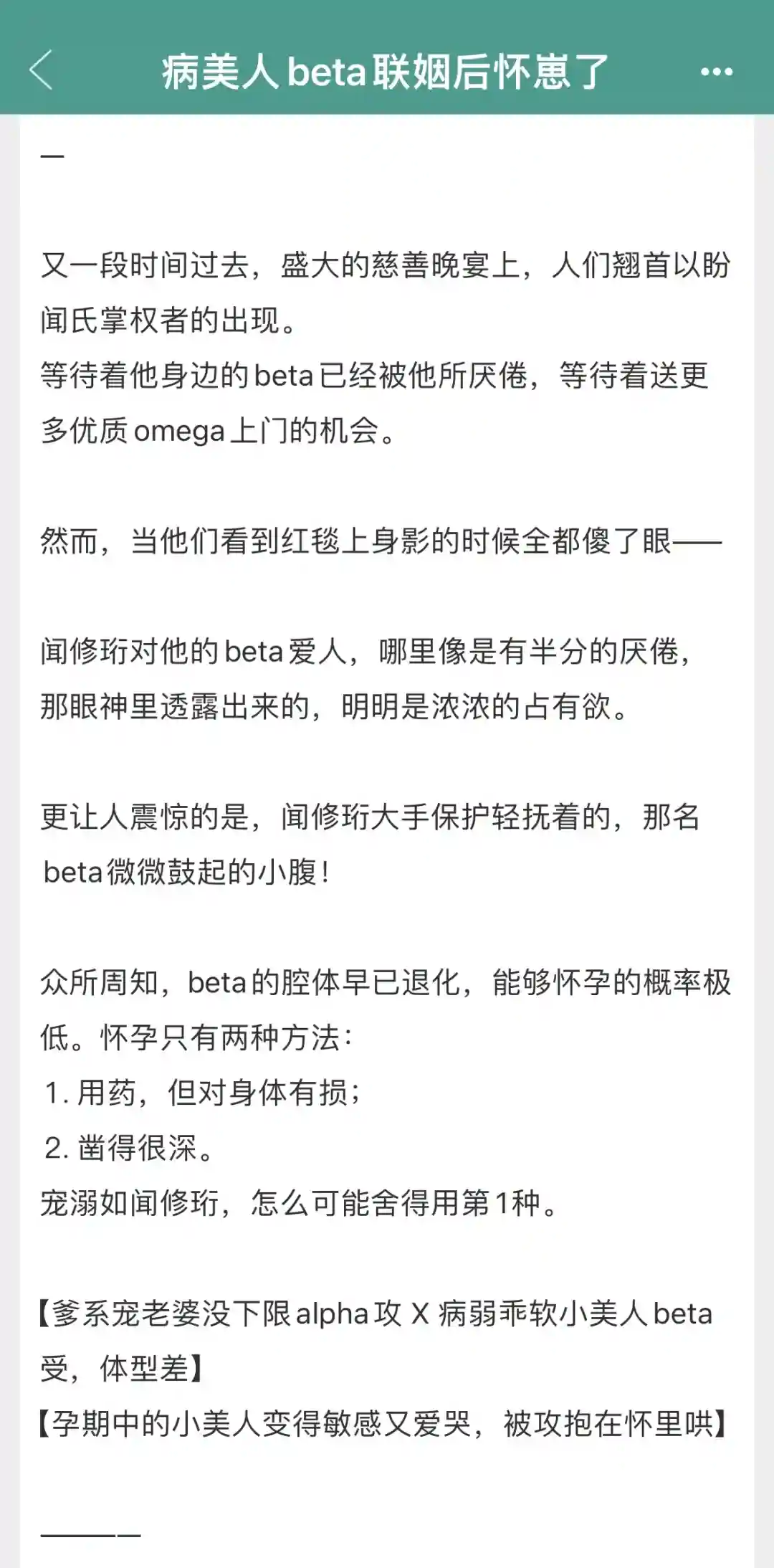 篇幅不算很长,剧情不多,主要是攻宠受的日常,受有心脏病,后期会好,病弱描写很多,喜欢病弱受的可冲~