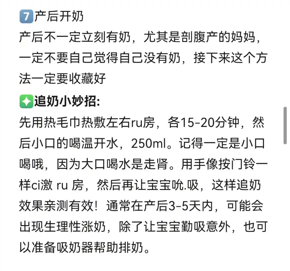 7️⃣产后开奶产后不一定立刻有奶,尤其是剖腹产的妈妈,一定不要自己觉得自己没有奶,接下来这个方法一定要收藏好,