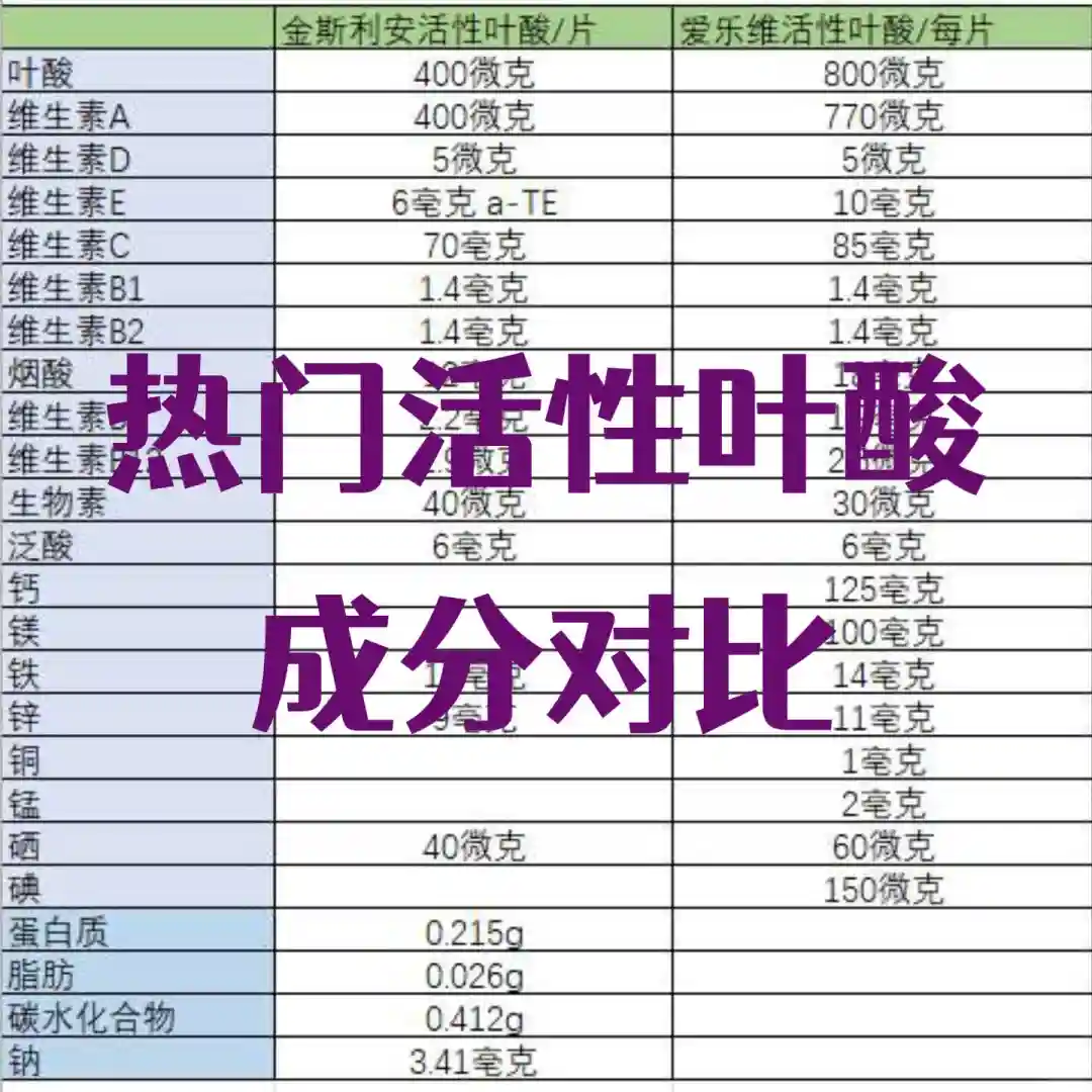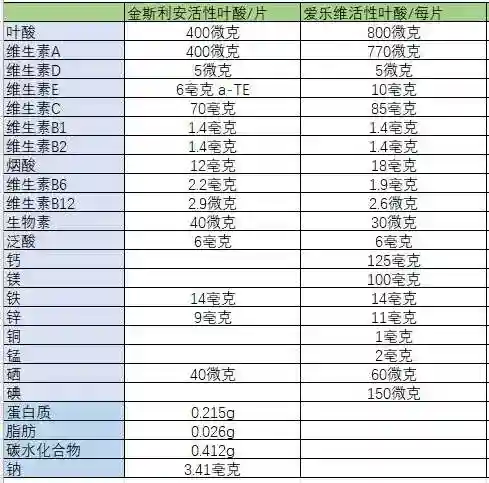 1.爱乐维是800微克活性叶酸含量,金斯利安是400微克