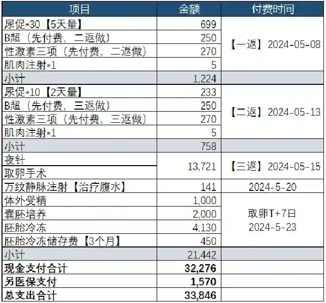 一代一促未移植,合计花费3.38w。其中促排的药物大量使用了最便宜的国产尿促,省了不少钱。便宜的坏处就是特别疼,每天六支尿促,每次打针都想哭。如果促排药全用进口果纳芬,同样的效果可能会贵1w(有双侧巧囊,年龄大,需要的药物量大)