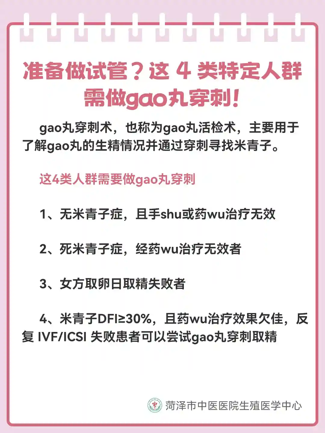 米青子DFI≥30%,且药wu治疗效果欠佳,反复 IVF/ICSI 失败患者可以尝试gao丸穿刺取精