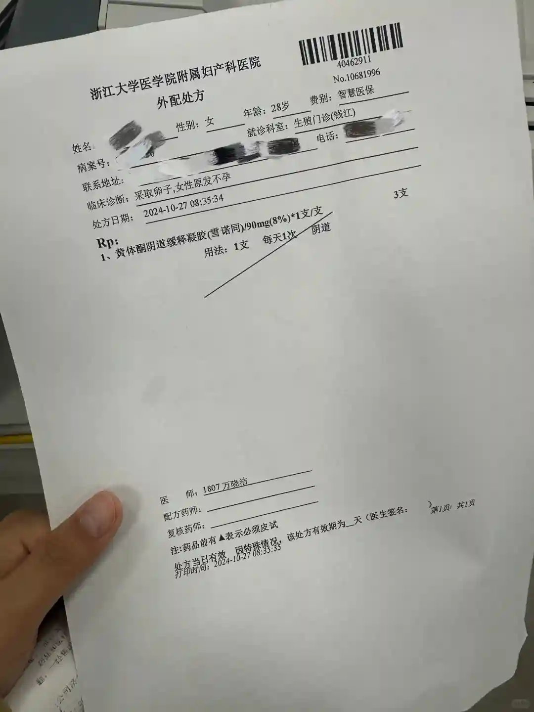 出院时,医生护士会召集今天取卵的所有人进行集体宣讲,就会收到今天的取卵小节,已经接下来的用药单和移植申请单。