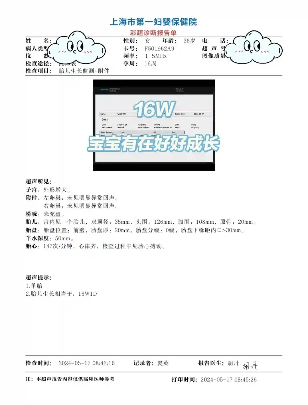 16周复查,trab略有回升,到了1.96,医生说指标超出不多问题不大,也怕造成甲减所以先不加药量,毕竟甲减对胎儿的影响更大,维持半粒的药量继续观察。本周宝宝也在健康成长,已经有一个🥑大小了。