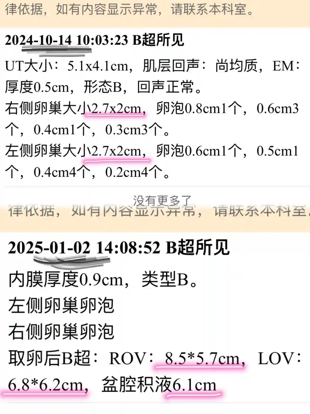 3⃣️卵巢增大了可不少 果真右侧比左侧更大 还有盆腔积液 下来整理裤子 看到正在做彩超的小姐妹的宝宝啦 小小的蜷缩在那里 好神奇