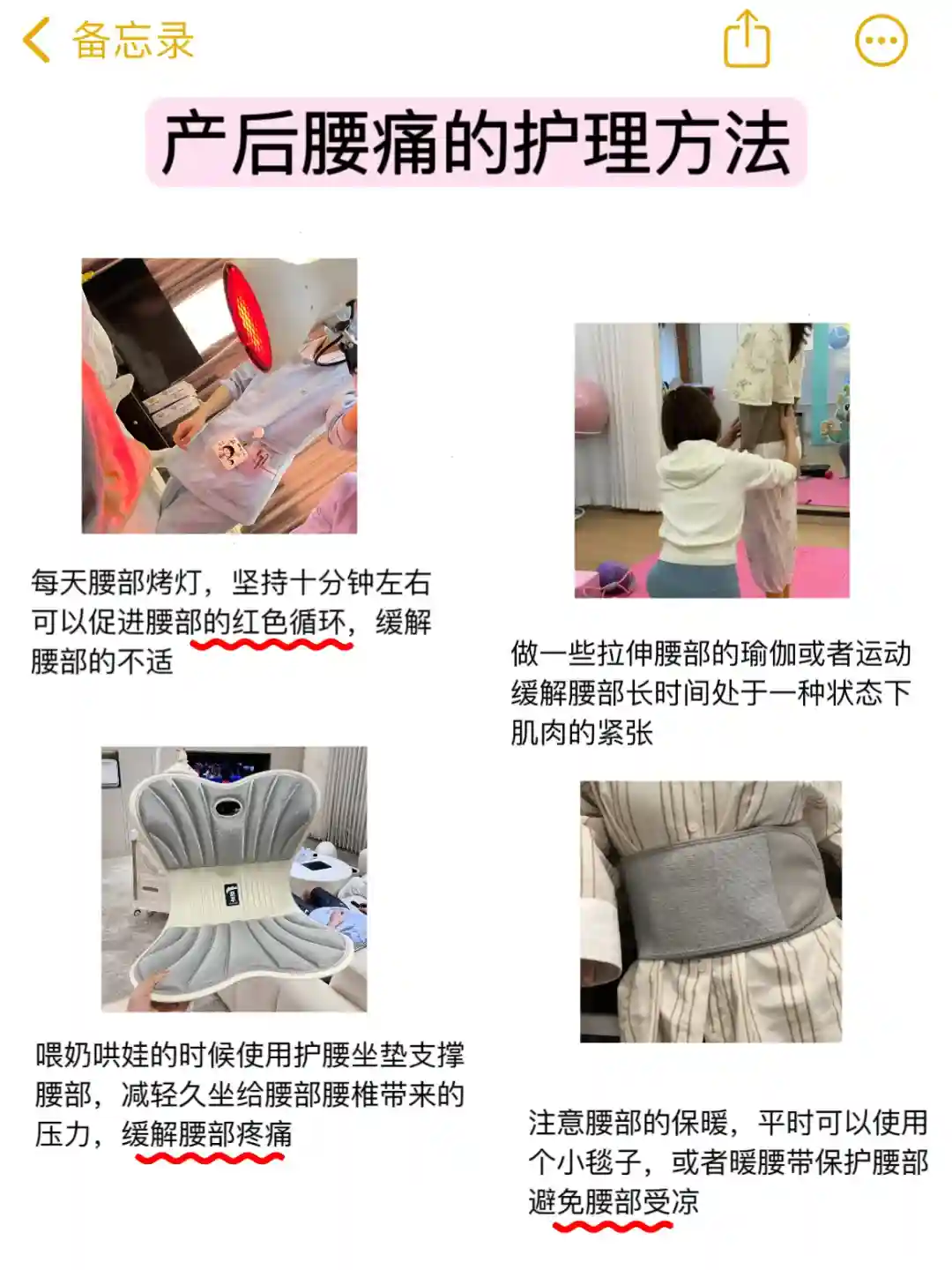 因为是第一次生产没什么经验,术后我也是手忙脚乱的,网上找的小tips也不全,根本不知道产后腰痛该怎么护理,慢慢的越来越严重。。