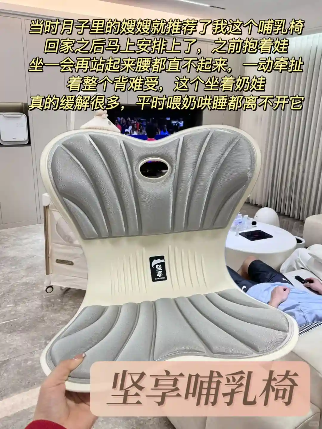 当时月子里的嫂嫂就推荐了我这个坚享哺乳椅,回家之后马上安排上了,之前抱着娃坐一会再站起来腰都直不起来,一动牵扯着整个背难受,这个坐着奶娃真的缓解很多,平时喂奶哄睡都离不开它