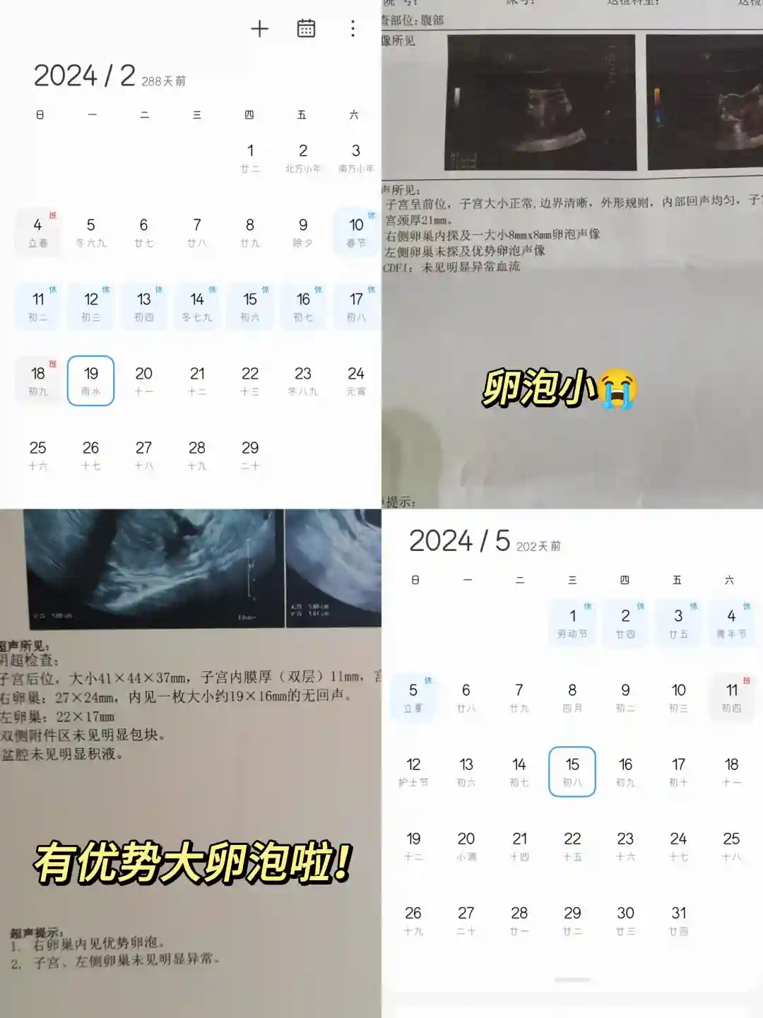 先说一下我的情况:我也是选择了试管备孕,选择了试管代数,打了促排卵针后就等待取卵了,可在等待的过程中监测卵泡大小时,我的卵泡很多都很小,达不到取卵的要求,好不容易有几个可以的移植还失败了,这才把养卵提上了日程,养了一段时间后去复查,一路绿灯,泡泡发育的又大又圆!取卵、培育、移植都很顺利