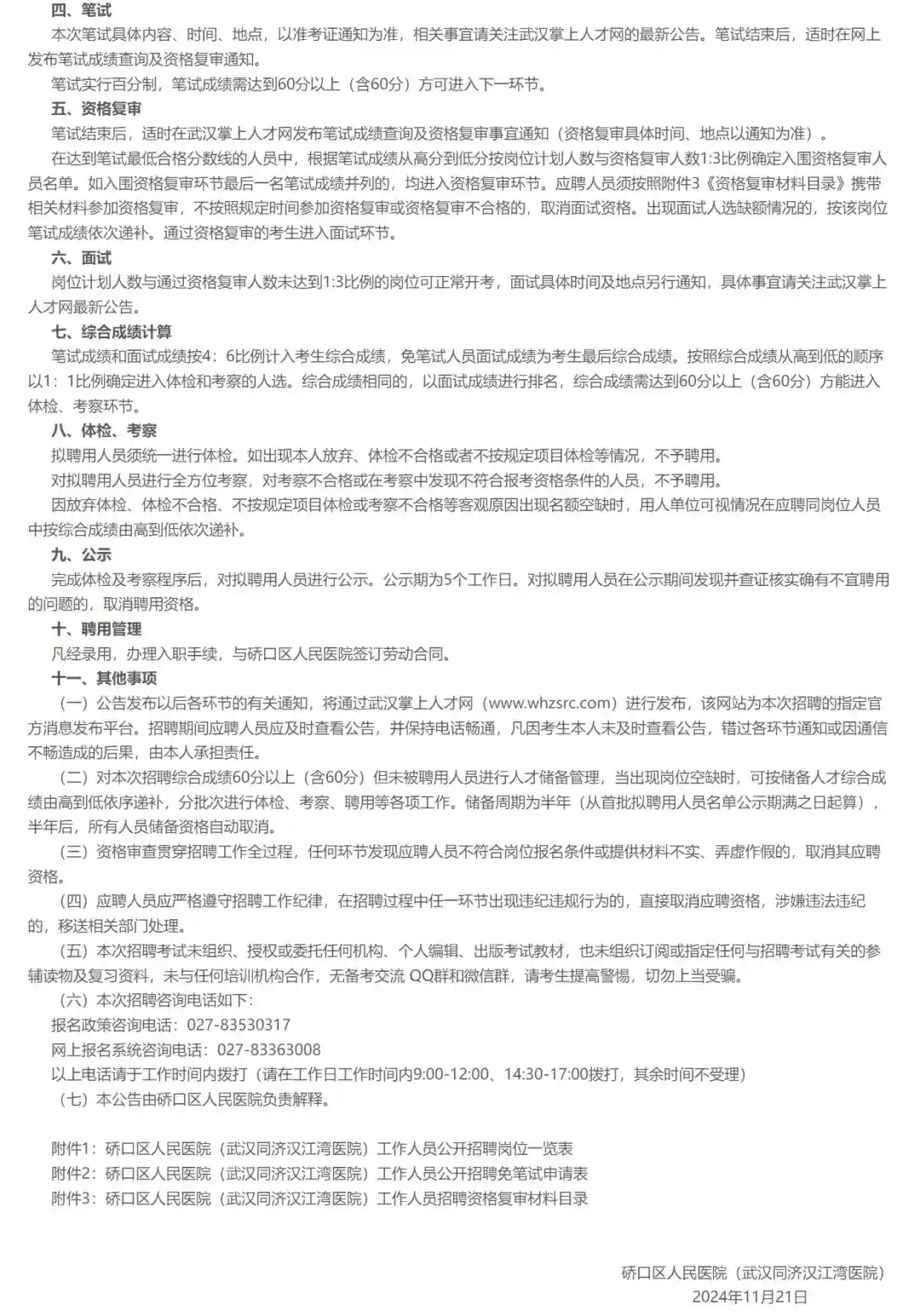 3.笔试:本次笔试具体内容、时间、地点,以准考证通知为准,相关事宜请关注武汉掌上人才网的最新公告。