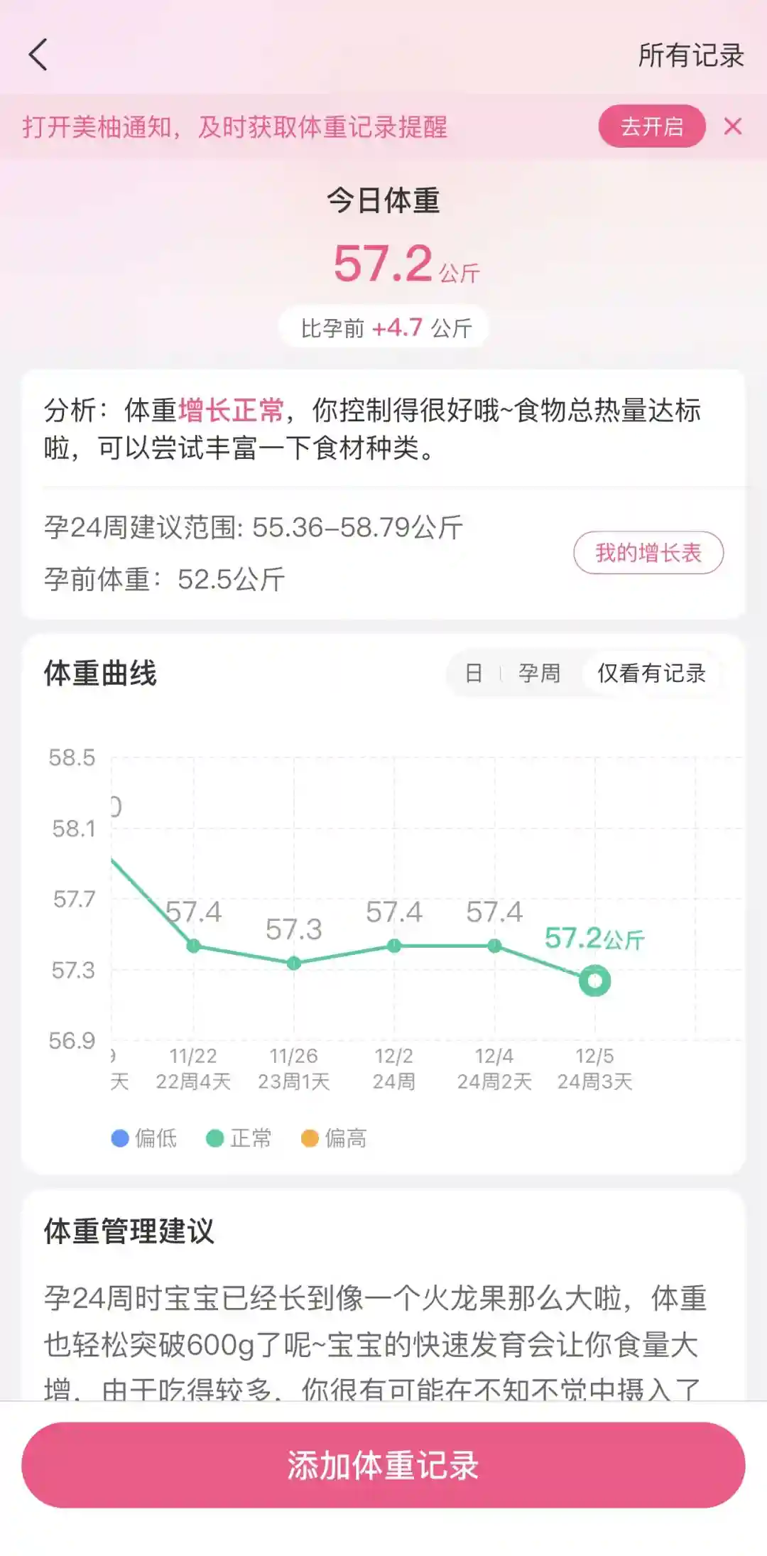 关于妊糖的问题,挂了内分泌科的沈主任,说是我这种情况只是超一点,有很大的可能可以控制住,看了单子半个月后复查,最近也在吃控糖餐了,体重上面小有成就,还是希望保持!#怀孕日记 #期待宝宝的到来