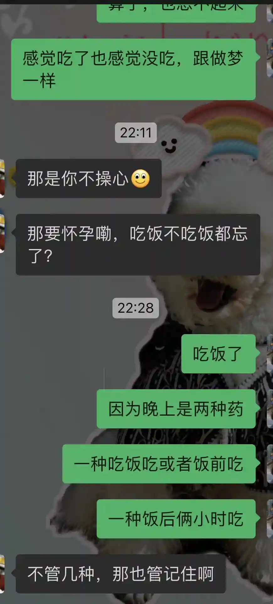 因为两个月打了两次全麻,记忆力是真的超级差,什么都记不住。半个小时前给队友吐槽说也不知道吃药没有,完全忘记了。换来了他一句,那你要会怀孕类