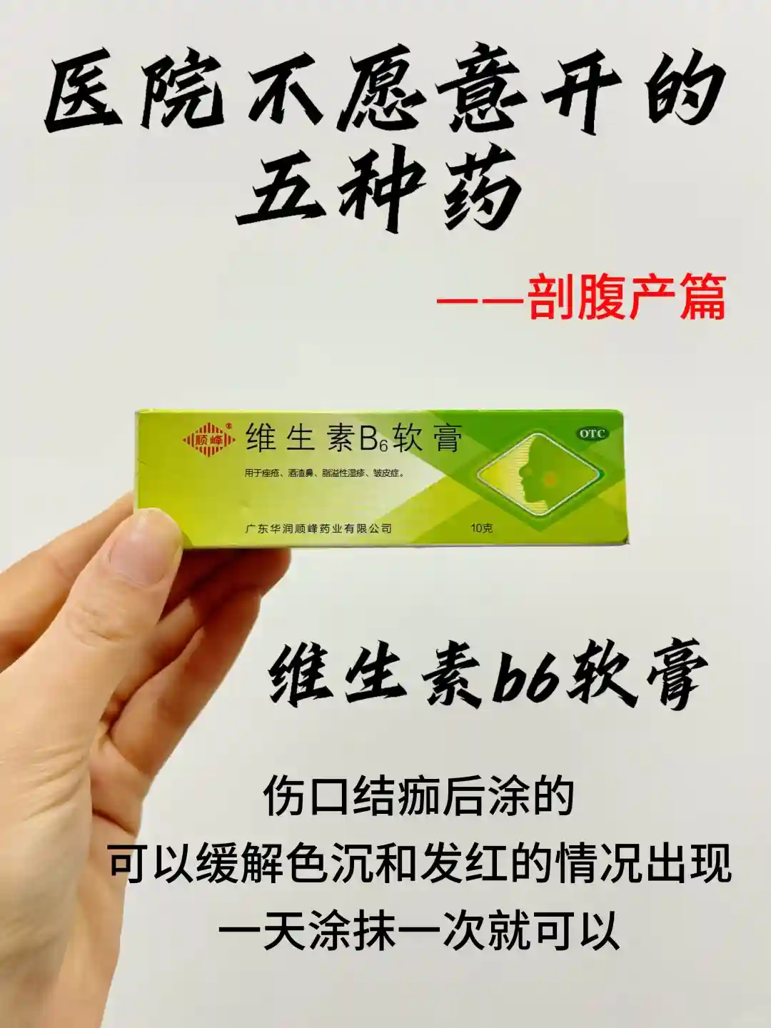 ✅维生素b6软膏: 伤口掉痂后涂的,可以缓解色沉和发红情况出现,一天涂抹一次就可以。