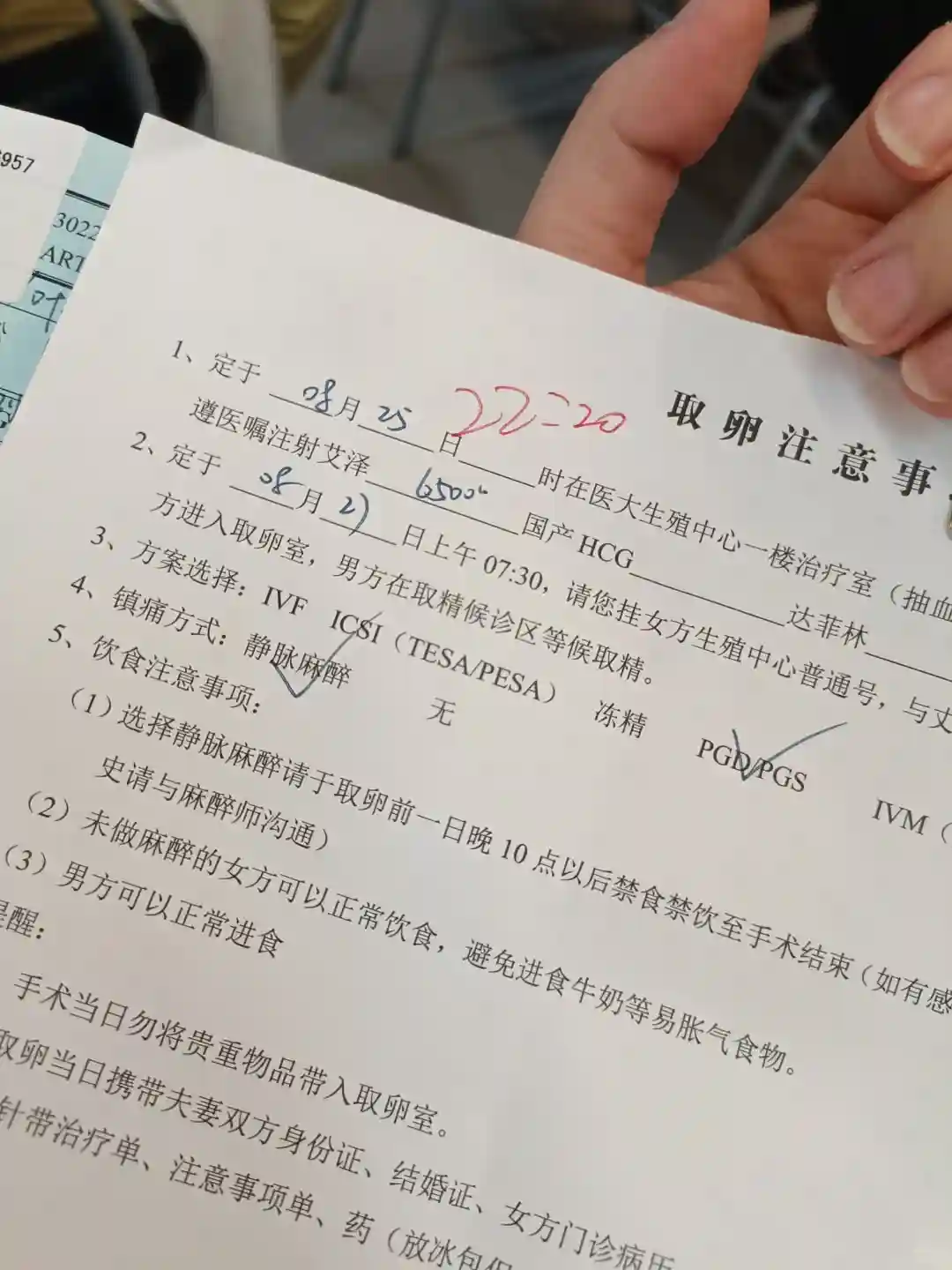 ,交完费就去了四楼护士站那等,通知了几点夜针,我要晚上10点20才打,27号早上取卵,然后听一些注意事项。今天就这么结束了,今天得跑三遍医院