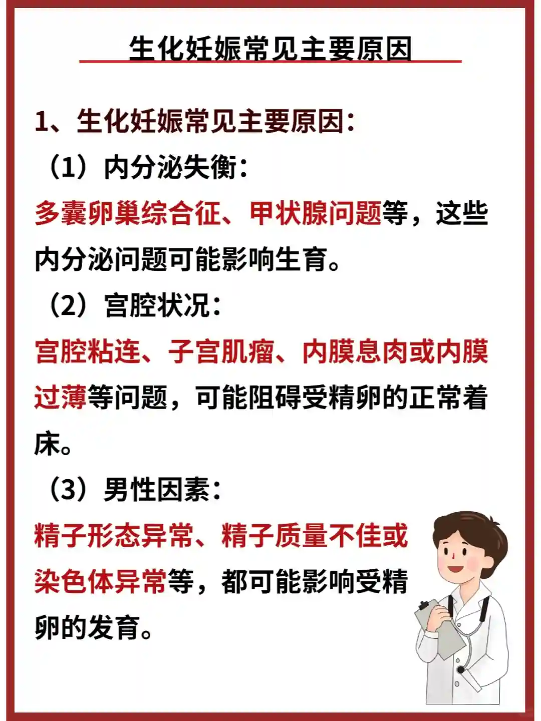 如果反复出现生化妊娠(两次或以上),这种情况可能由多种因素引起,需要进行全面的检查,以避免再次发生。