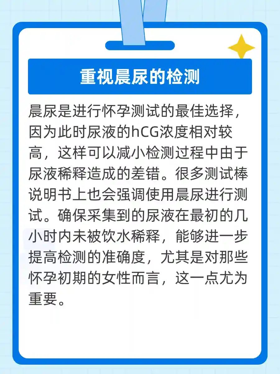 小窍门来了!早晨刚起床的尿液中hCG浓度较高,所以记得把测验棒放在床边,第一时间去“捕捉”这个小精灵!🐾 有些人甚至会把测试棒放进洗手间,提前准备好,激动得心里砰砰直跳!💓