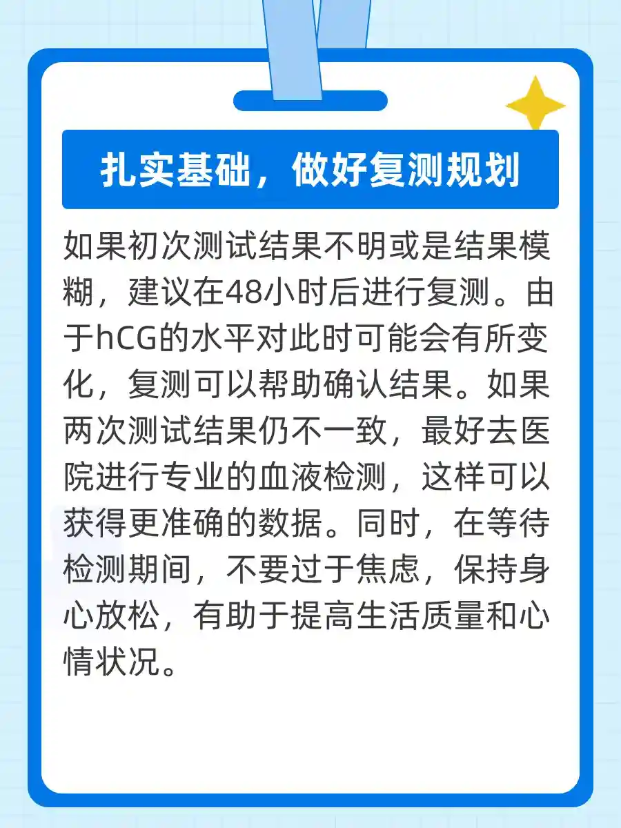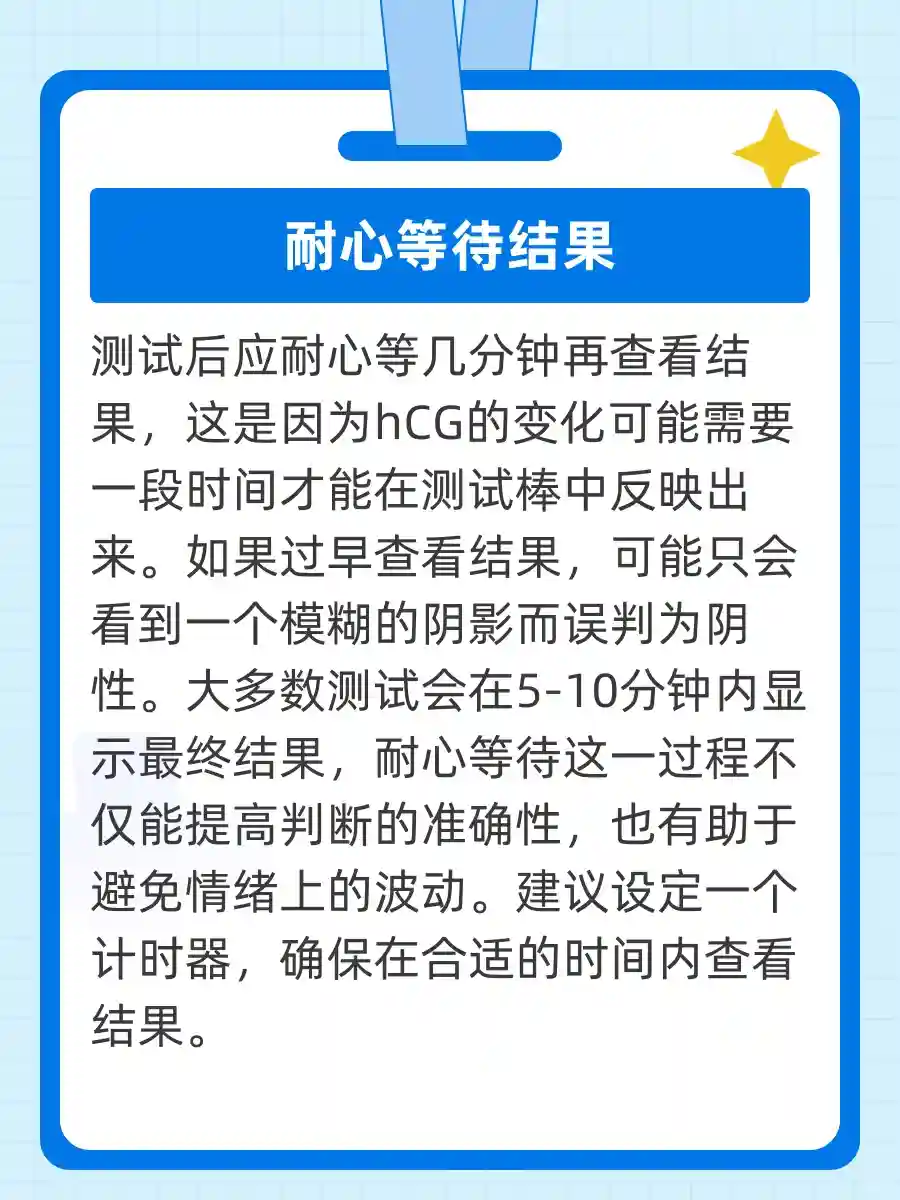 测完之后,别立刻去看结果!在等待那几分钟里,脑海中肯定会浮现出各种画面——小宝宝的样子、未来的生活… 但千万别拿着测试棒摇晃哦!🔮 这样只会让你更紧张,建议乖乖地等着,结果可不是像魔法一样瞬间出现的哦!📏 4. 如果结果不明确,进行复测!