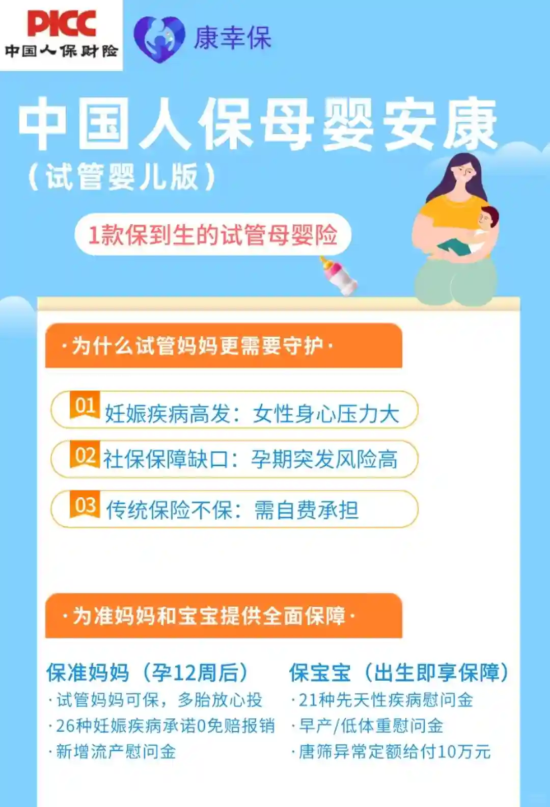 1️⃣中国人保心愿保试管保险,试管不成功赔付50000元。