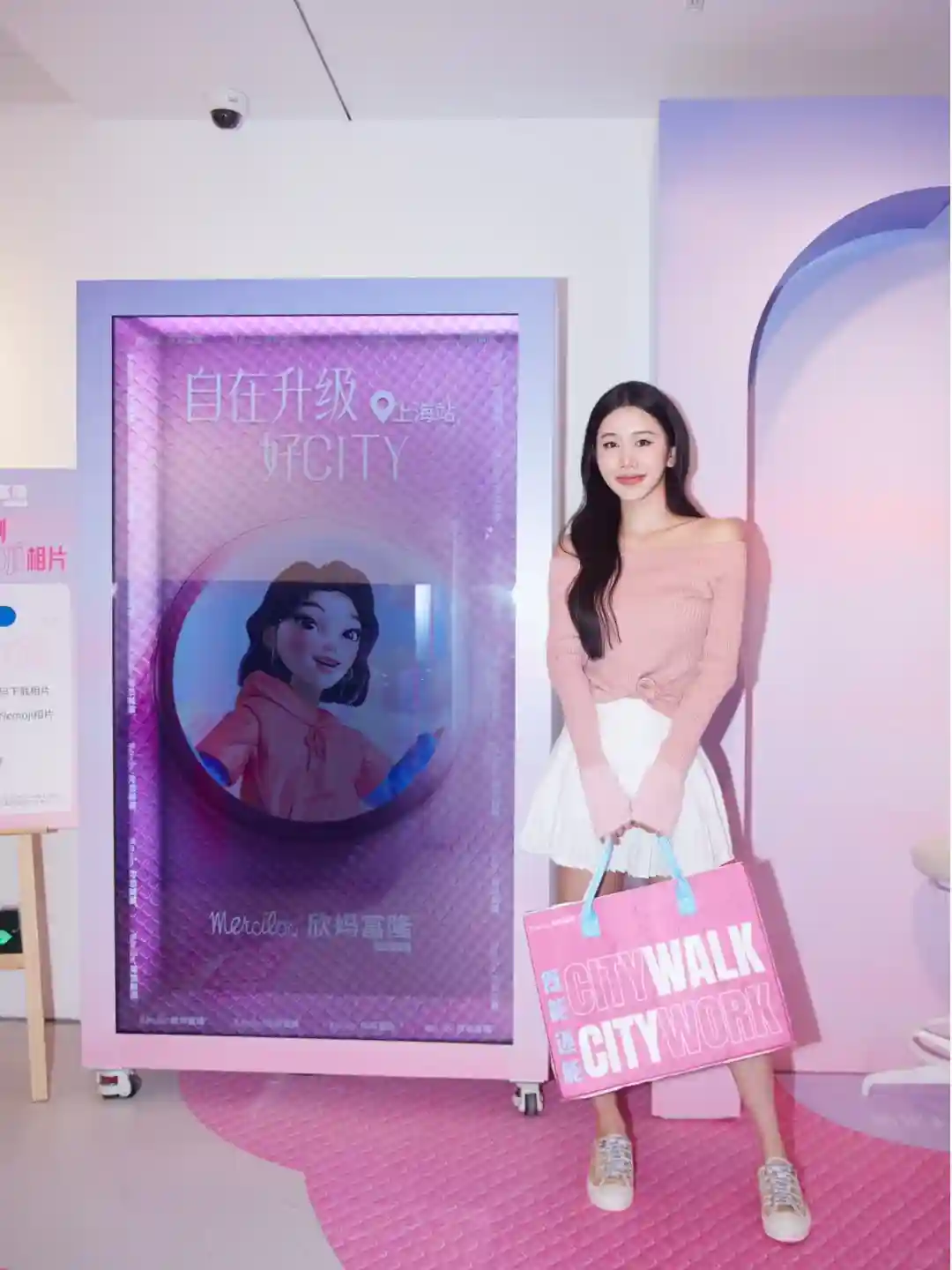 走了两条街终于是和小粉人合上影了