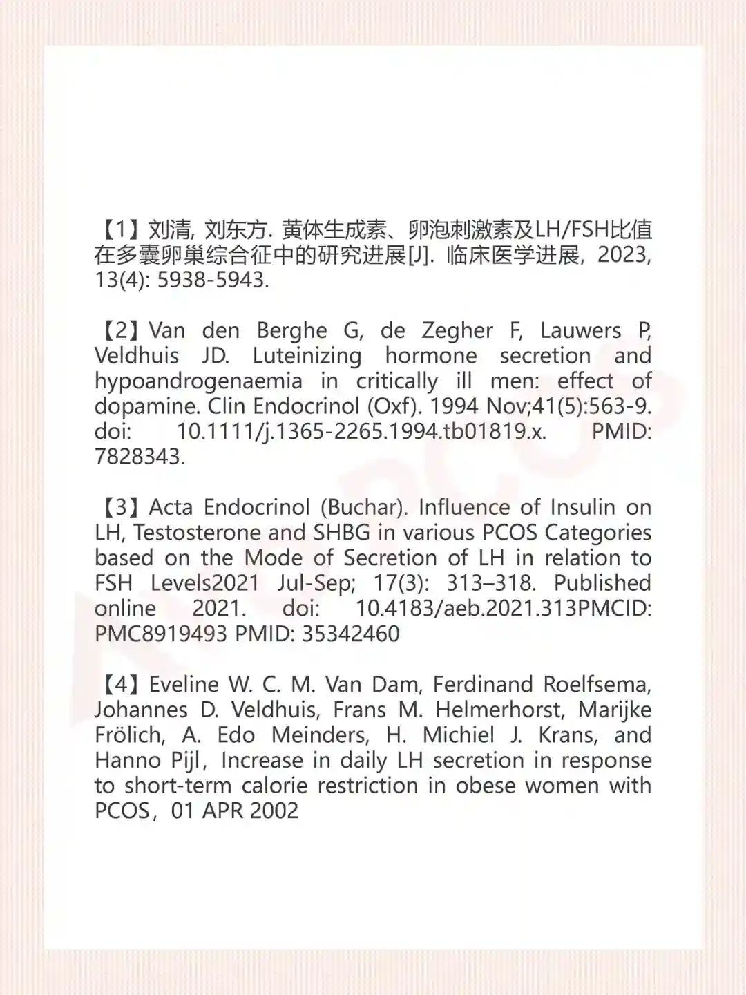 🔸研究表明,对于多囊女性,胰岛素水平和LH水平呈正相关关系,胰岛素水平越高,LH水平显著升高。
