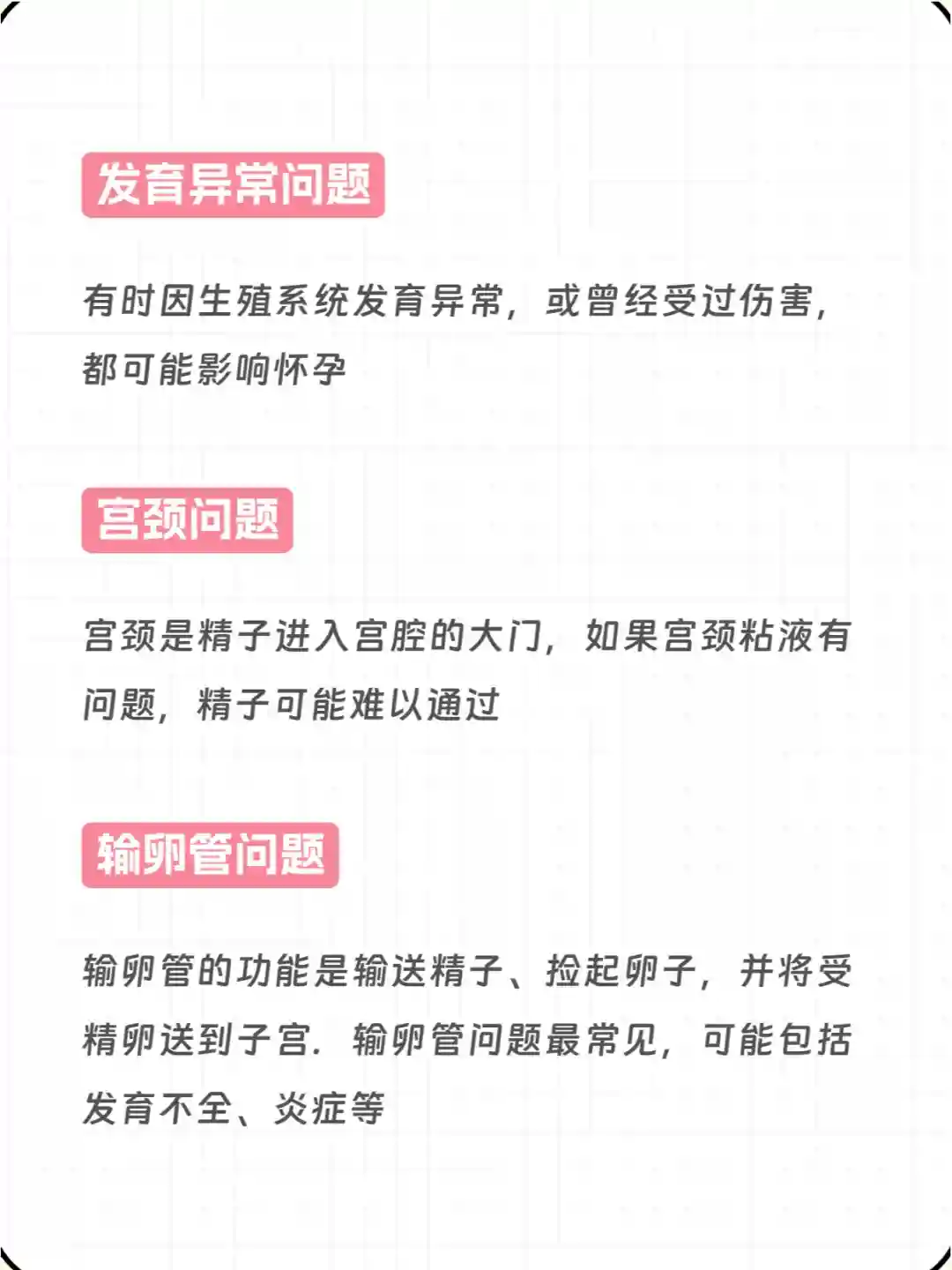 2. 宫颈问题:宫颈是精子进入宫腔的大门,如果宫颈粘液有问题,精子可能难以通过.