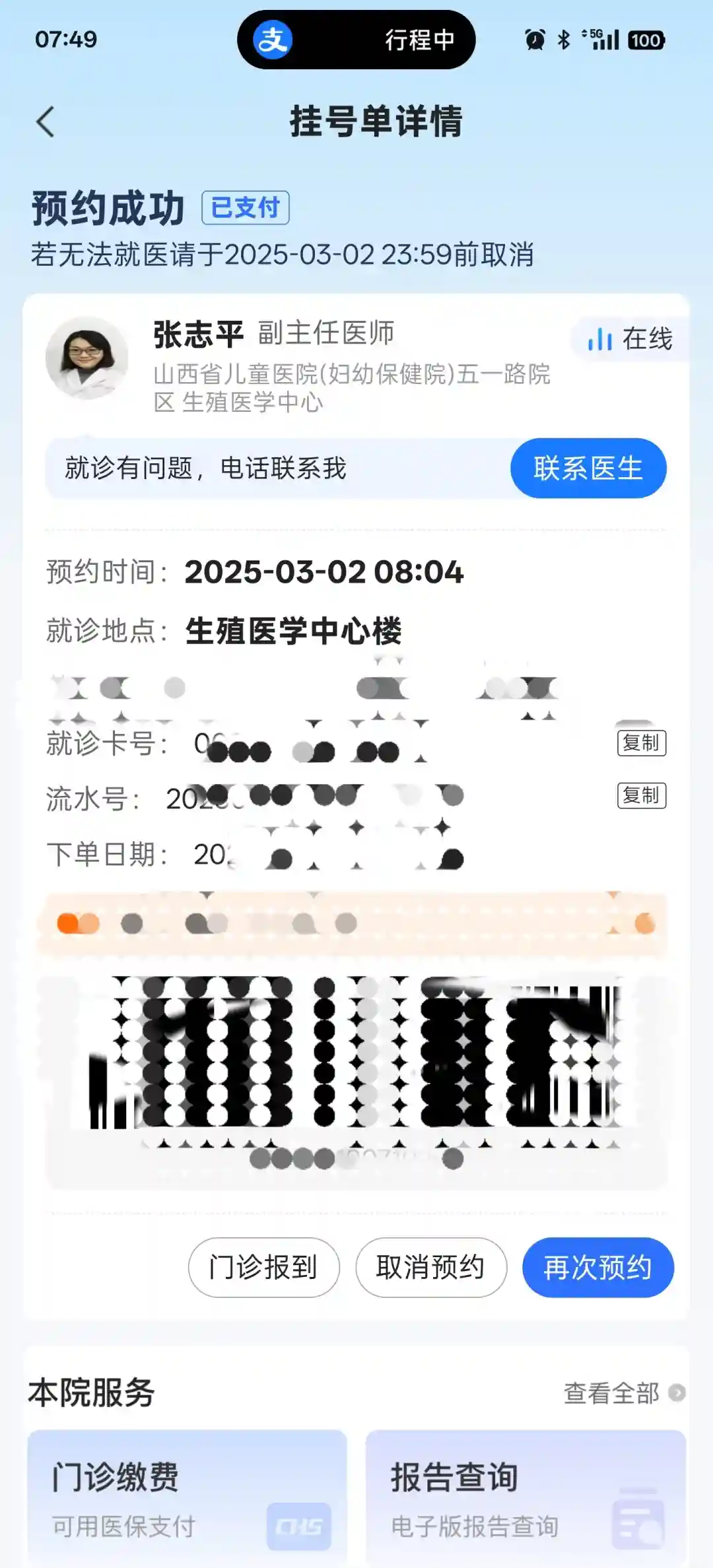 女:挂省妇幼生殖医学科医生-开单子-缴费-采血