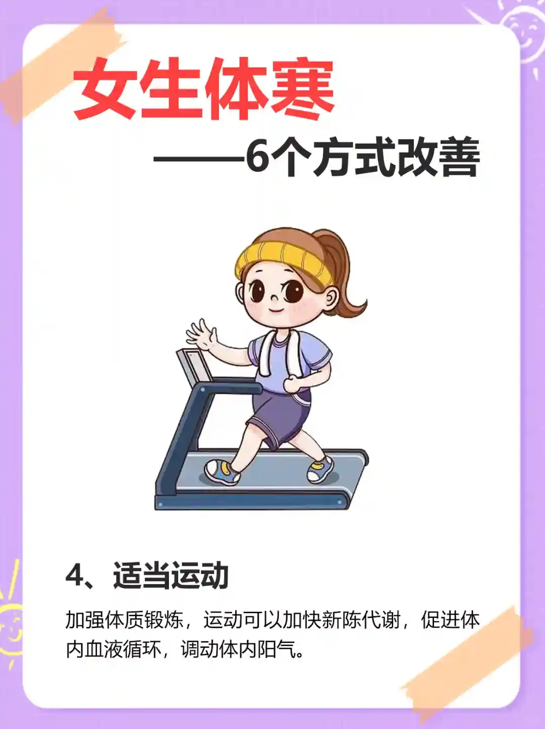 加强体质锻炼,运动可以加快新陈代谢,促进体内血液循环,调动体内阳气。
