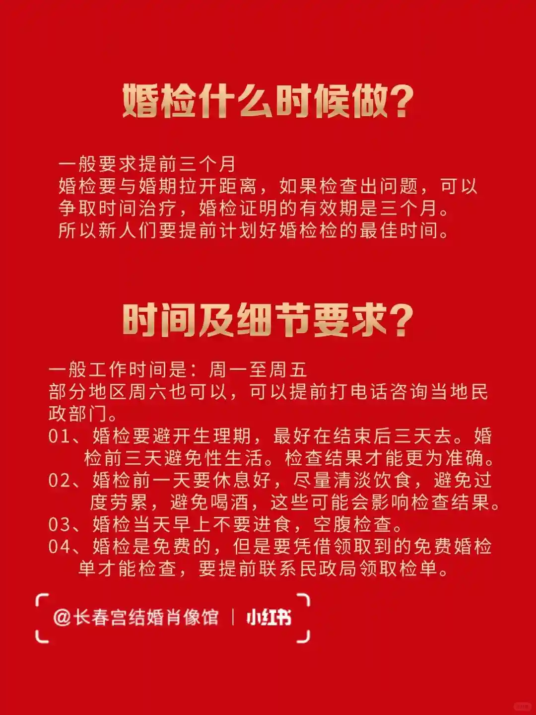 01、婚检要避开生理期,最好在结束后三天去。婚检前三天避免生活。检查结果才能更为准确。