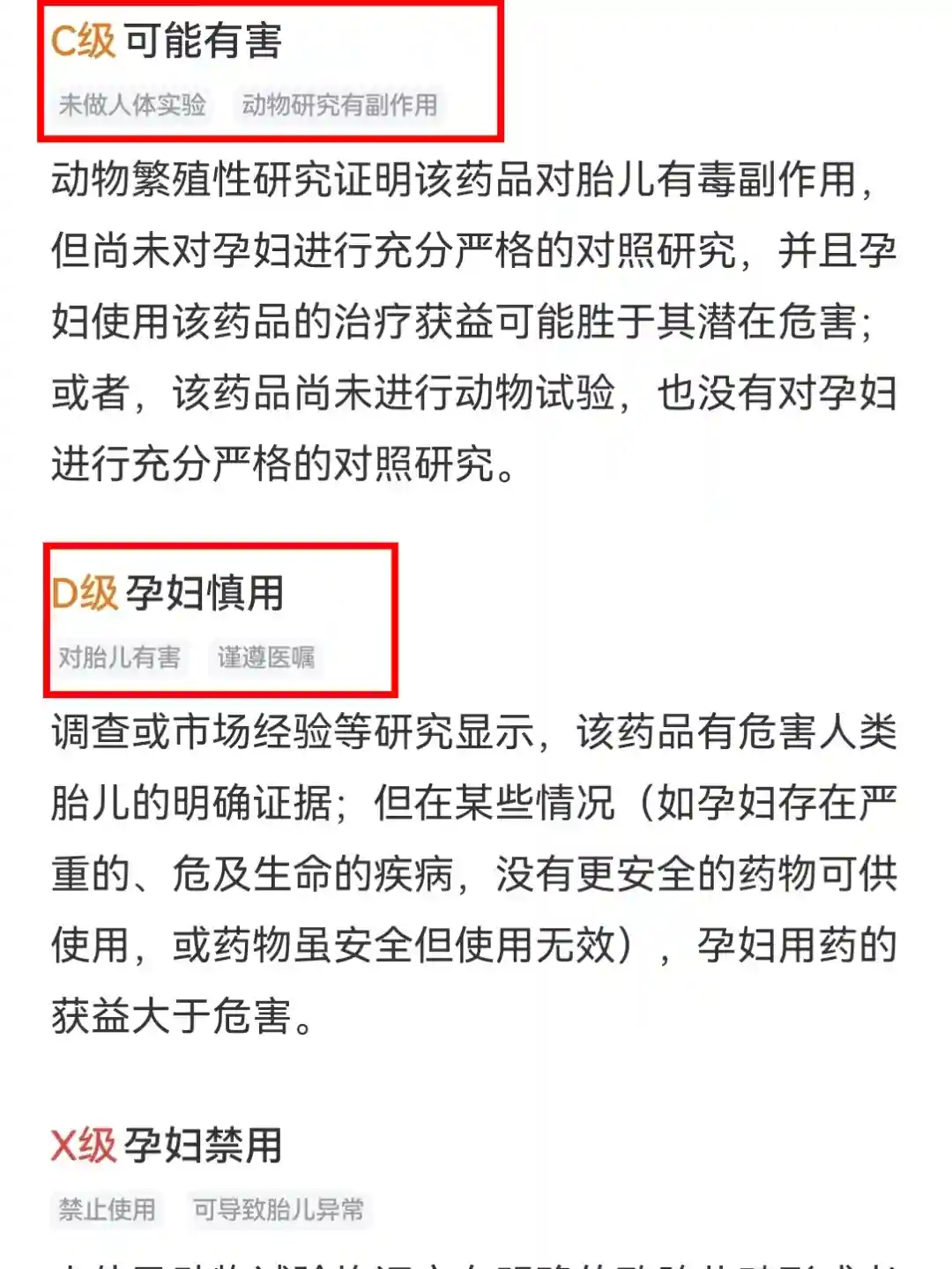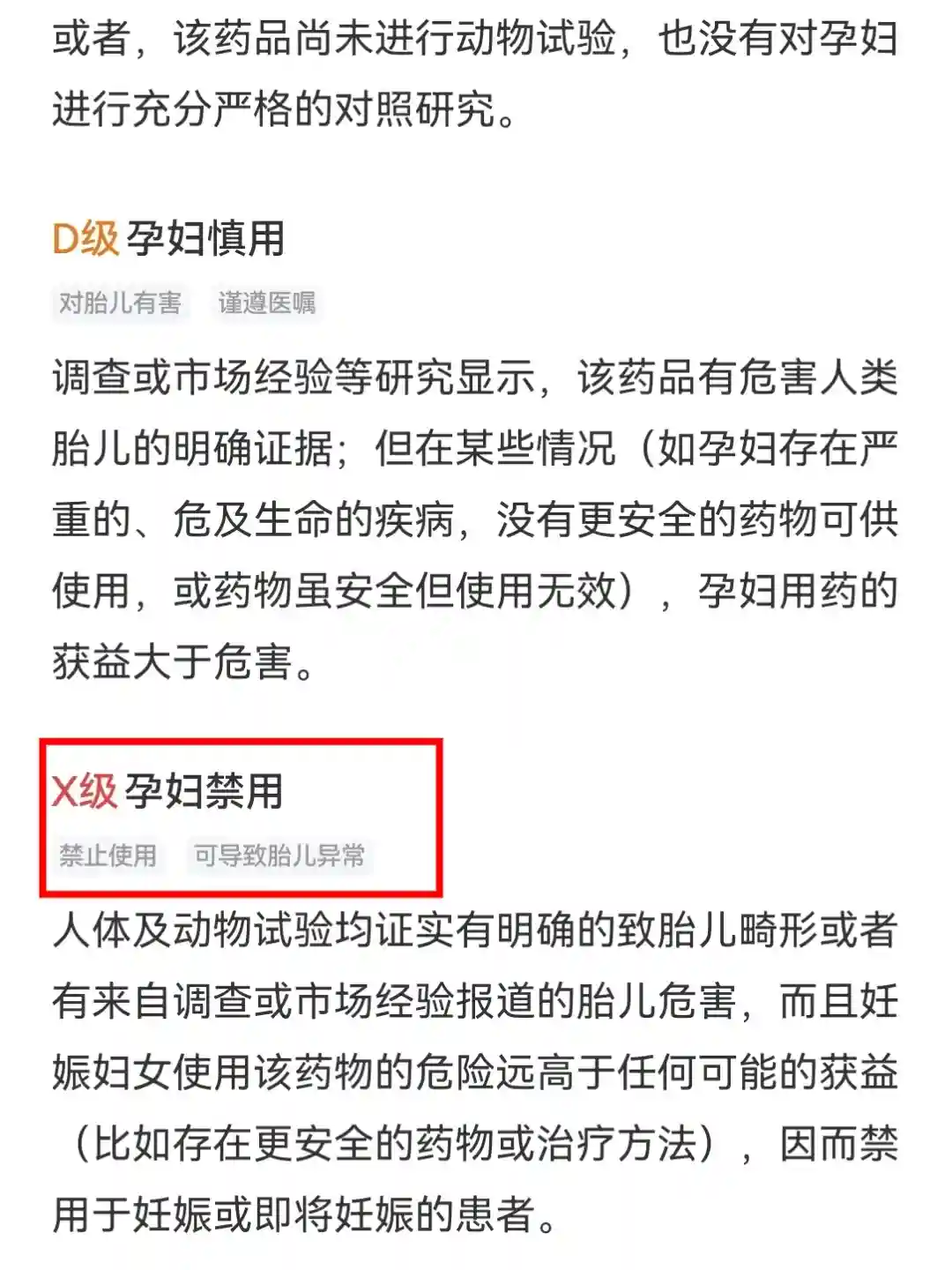 此外,美国食品和他💊物管理局(FDA)根据💊物对胎儿的危害性将其分为A、B、C、D、X五个等级。这些等级也适用于备孕期间的💊物使用,咱们在备孕期间坠好只服用A、B级的💊物,其中X级💊物对胎儿有严重危害,应在备孕期间严格避免。