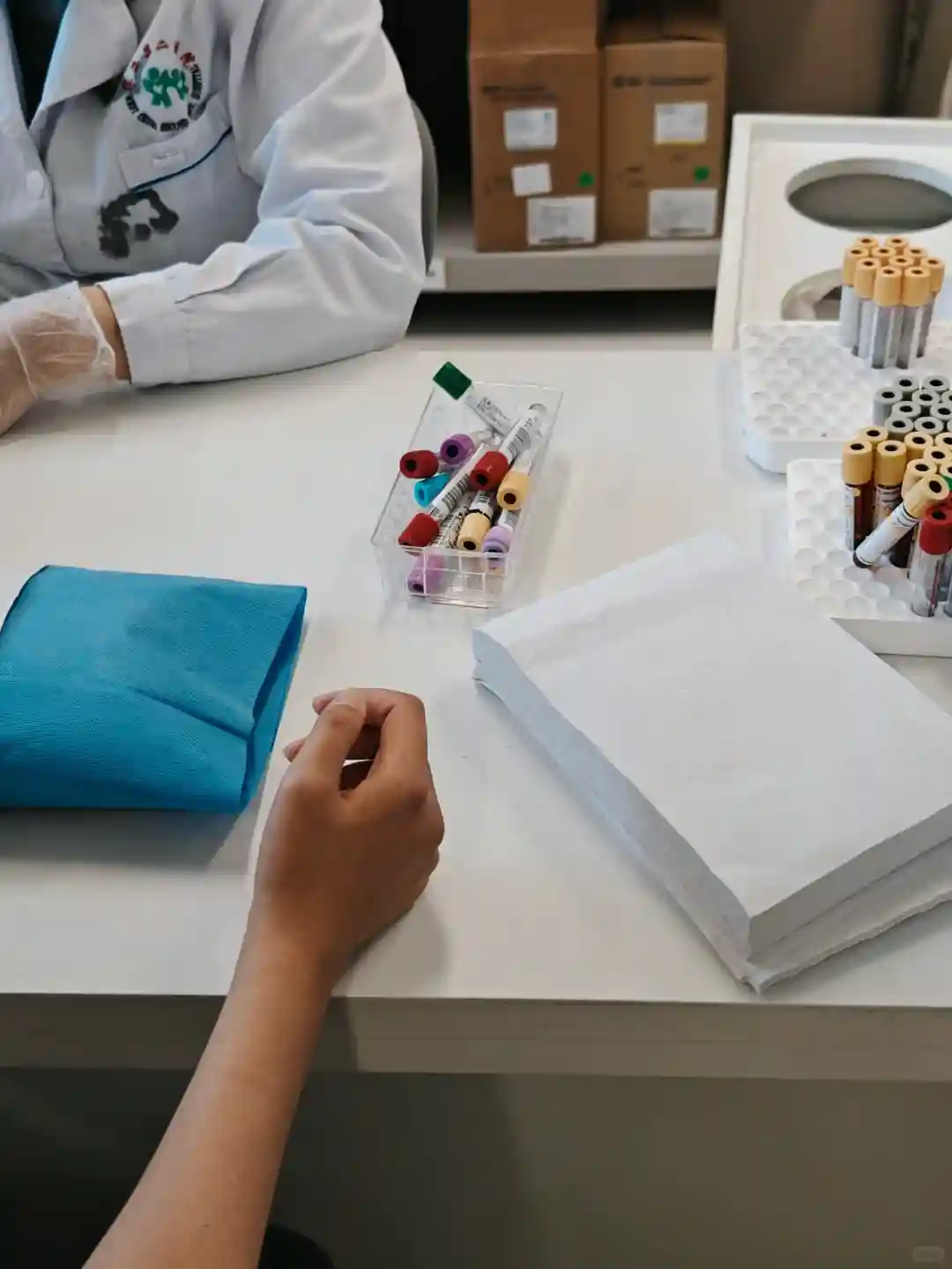 2、交费后先去产诊断中心签字,然后开始检查,空腹抽血,抽了14管,抽到崩溃,抽到手都麻了,抽完好几个小时手臂都还是很痛没力气。
