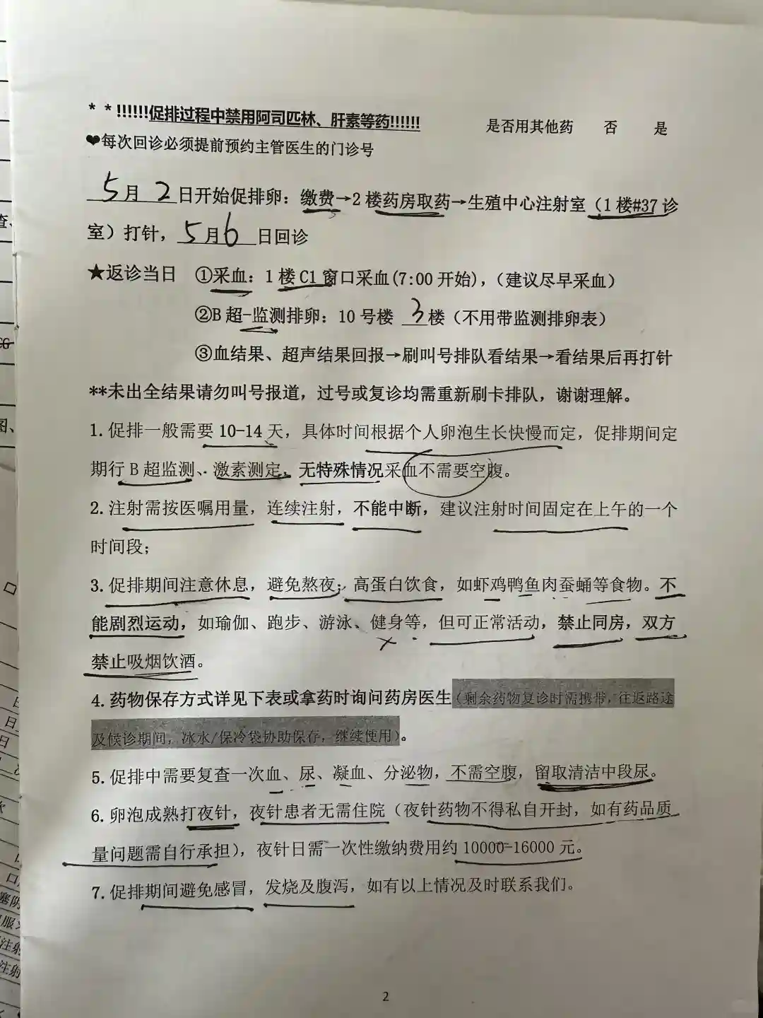 5月2日—5月12日期间,需要多次往返医院,打针促排,做检查(促排期间检查费➕促排针大概1w),打夜针(打夜针一次性交费1W多)