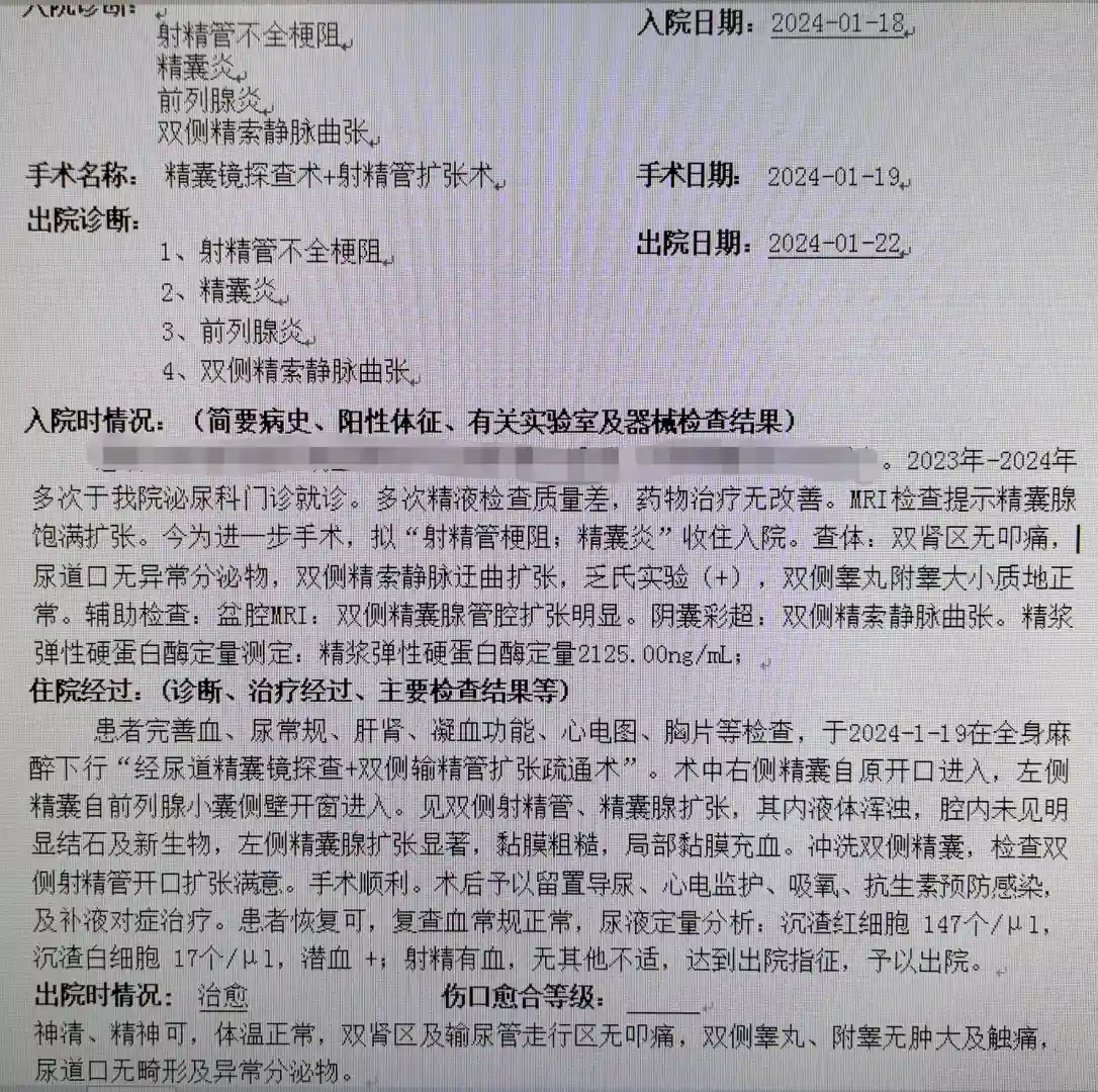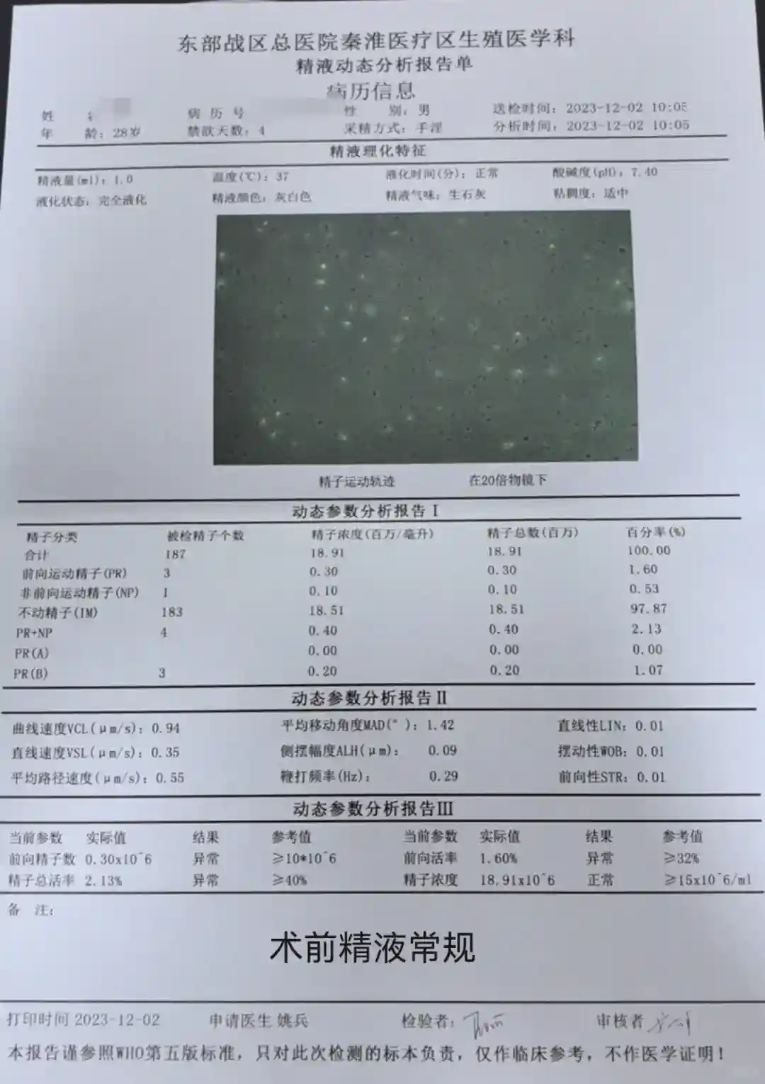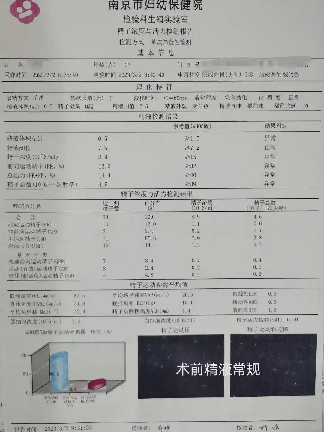 感谢患者对我的信任🙏这位患者如果直接去做试管,大概能有两成的成功率,因为碎片率很高。钱多花很多,关键老婆受罪。温馨提醒:诊治男性精液质量问题最大的难题在于明确病因!许多医生都知道精索静脉曲张、炎症和熬夜的影响,然而“精道不完全梗阻”往往会引起更严重的精液质量问题。如何确认梗阻的存在和梗阻的部位是临床工作中的难点。单次的精液检查报告往往难寻端倪,多查几次有利于医生的判断。实验室和辅助检查结果需要我们仔细的甄别,临床思维永远是最重要的。