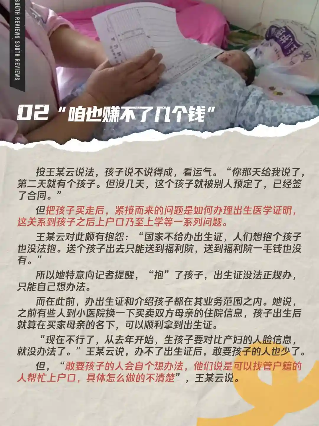 据其了解,王某云自己和他人聊天时亲口承认,长期以来参与此事,“10月份介绍了两个婴儿”。