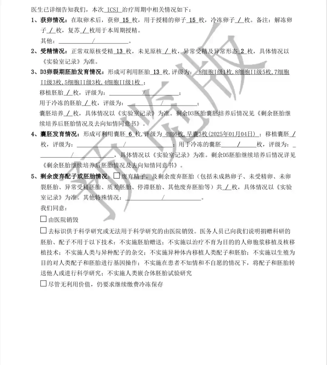医生说:还有3个早囊还在发育,需要在多养一天看看情况,如果第二天不发育就由医院处理掉…