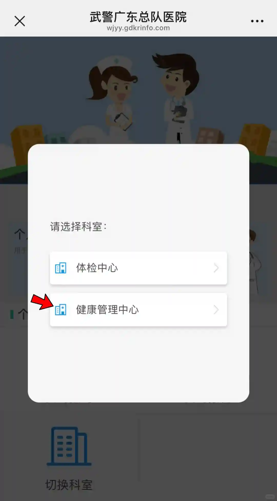 微信预约✔️武警广东总队医院-患者服务-健康体检-健康管理中心-个人体检-入职体检-性别选择-套餐选择-日期确定