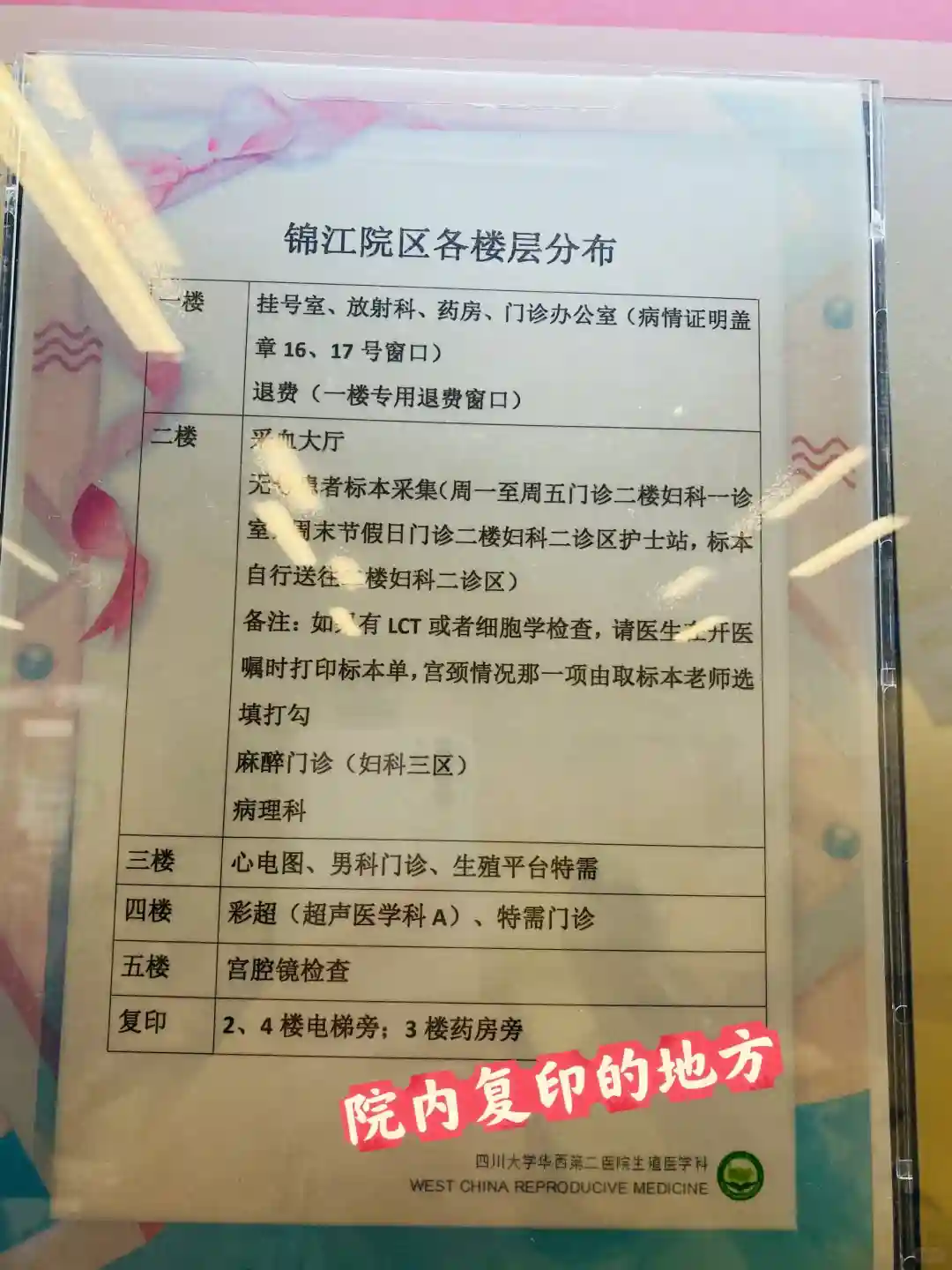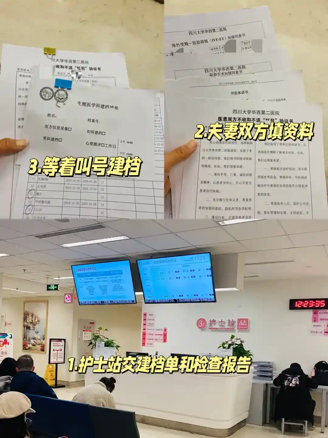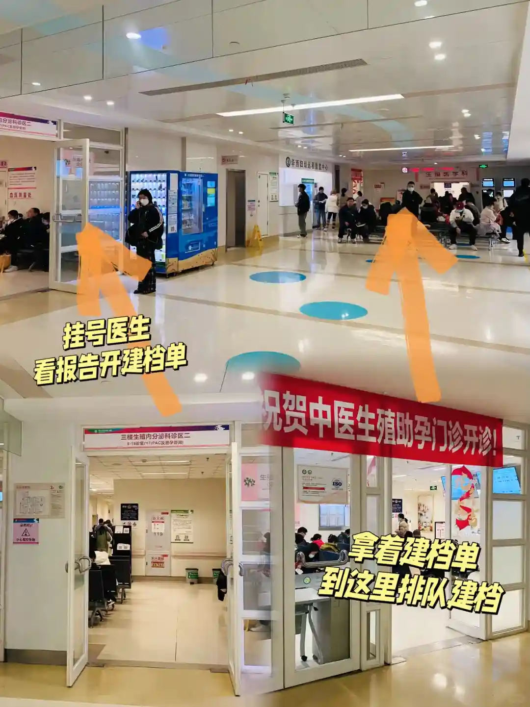 拿好建档的单子和所有的报告(包括复印件)到“生殖医学科”的护士站排队建档。