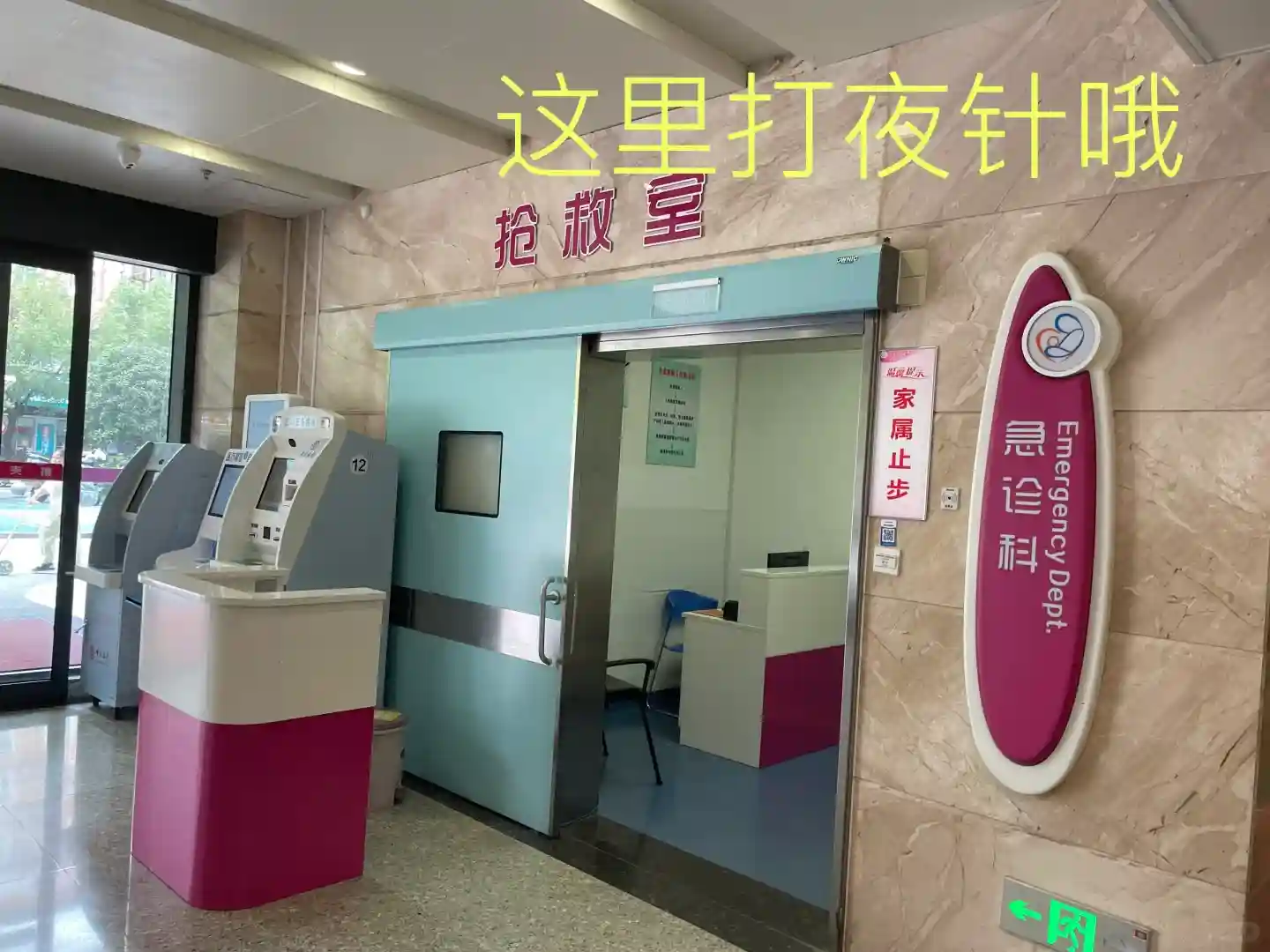 D12:白天门诊思则凯0.25mg,晚上急诊打金磊和丽珠,打针位置在急诊这里,提前3分钟把卡给里面导台的护士。