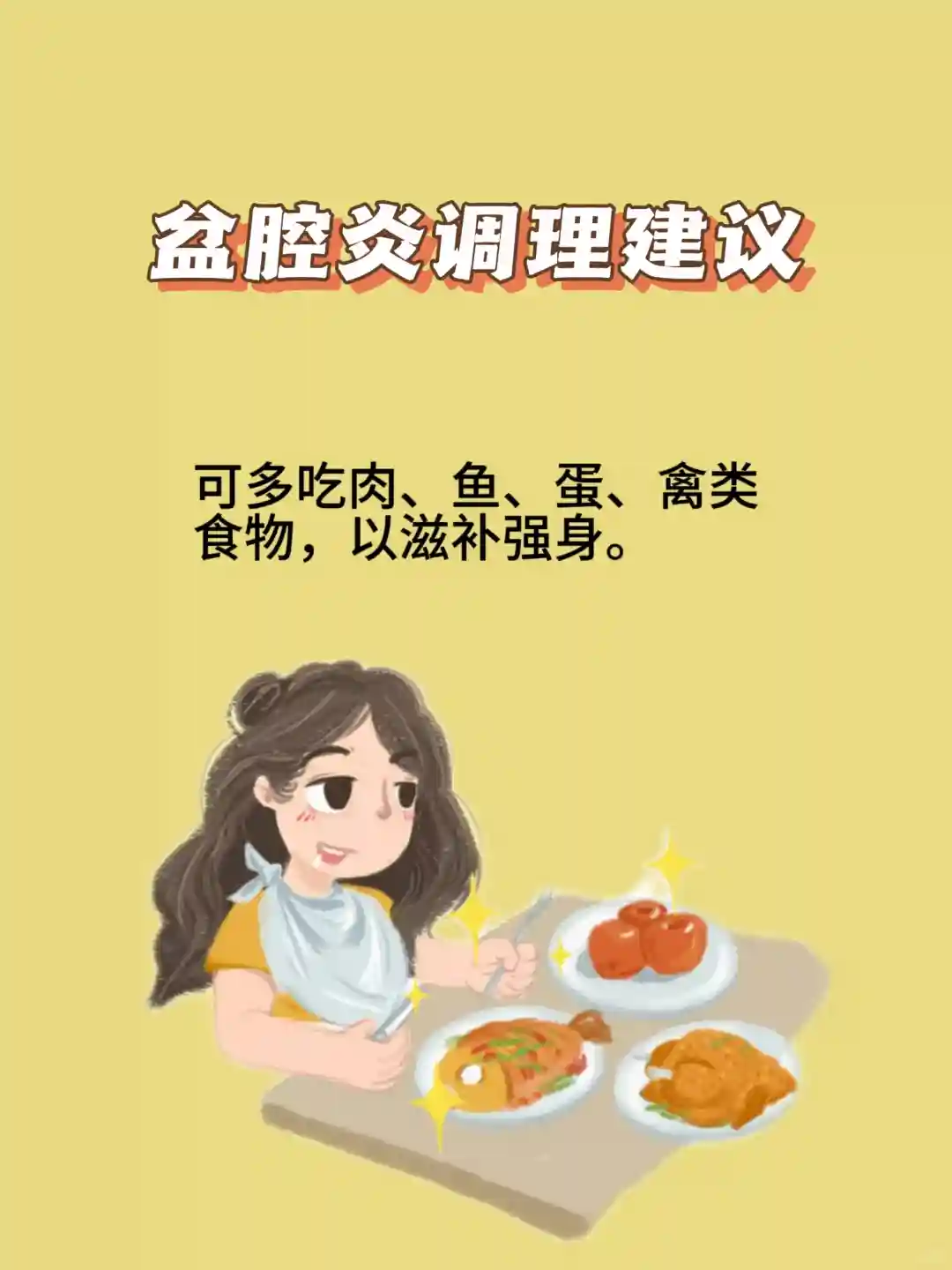 🌱可多吃肉、鱼、蛋、禽类食物,以滋补强身。