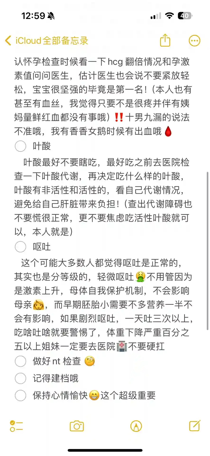 叶酸最好不要瞎吃,最好吃之前去医院检查一下叶酸代谢,再决定吃什么样的叶酸,叶酸有非活性和活性的,看自己代谢情况,避免给自己肝脏带来负担!(查出代谢障碍也不要慌很正常,更不要焦虑吃活性叶酸就可以,本人就是)- [ ] 呕吐