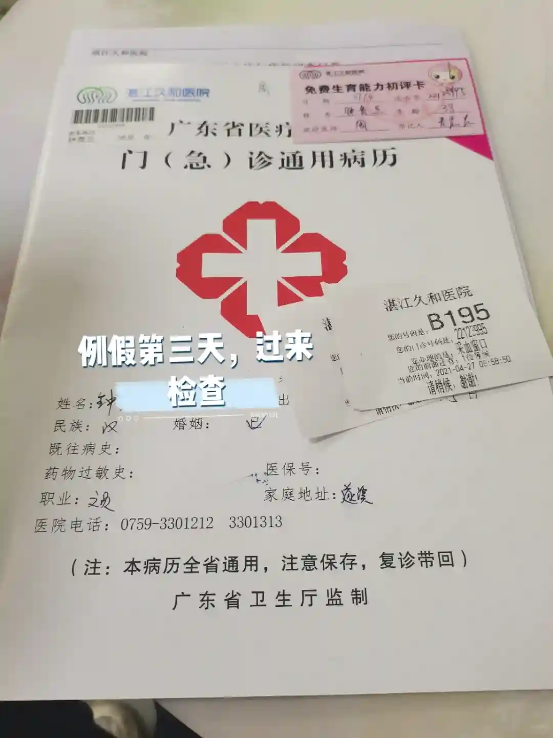 2021年4月27日 湛江久和医院 第一次检查